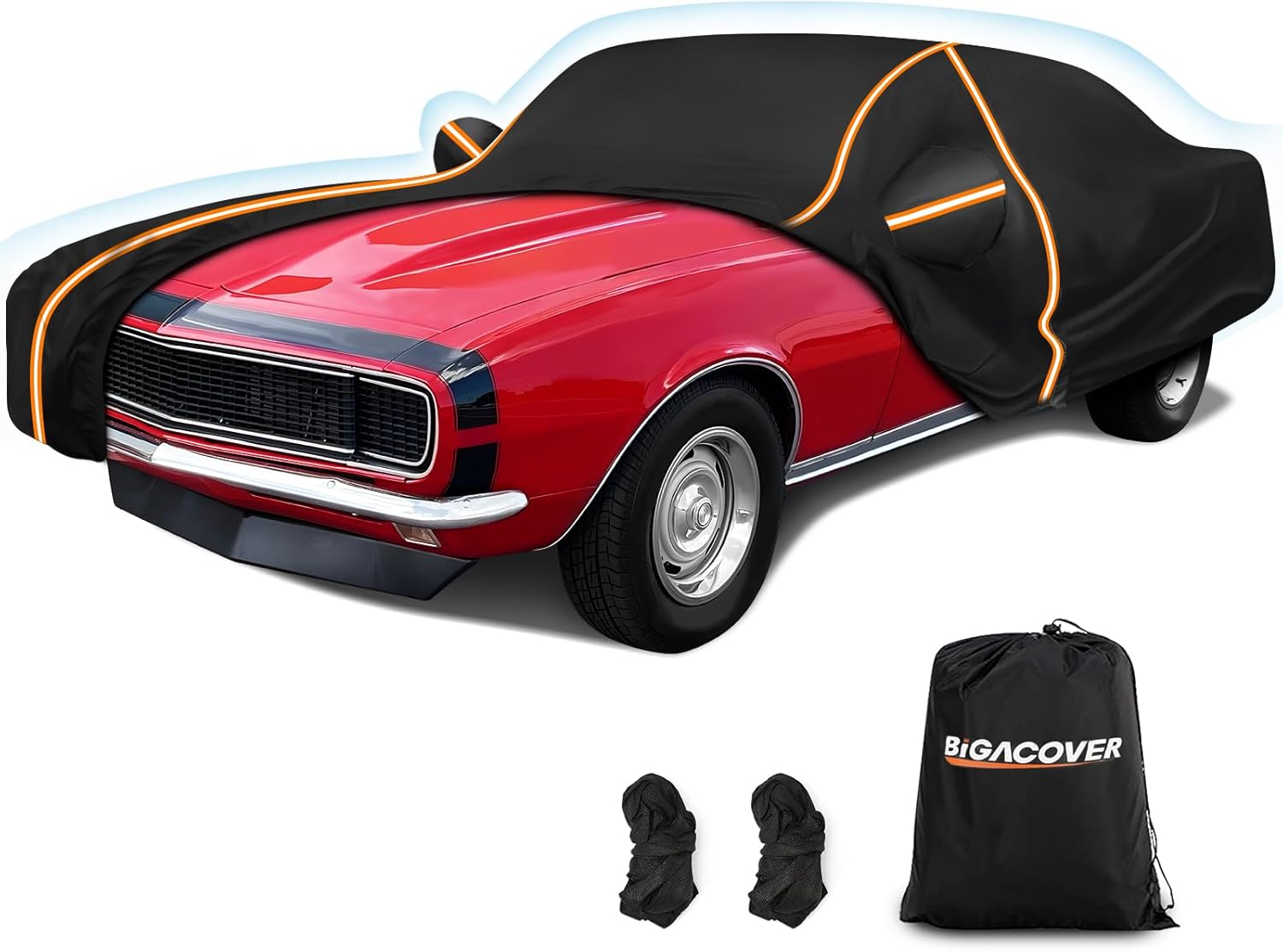 - 【Car Cover for Chevy Camaro】 This waterproof all-weather full car cover perfectly custom fits Chevy Camaro 1967-1981. Size:198 (L)*75(W)*52H)in. If there are any quality issues with the product you receive, please contact us immediately and we will send you a new car cover for free.