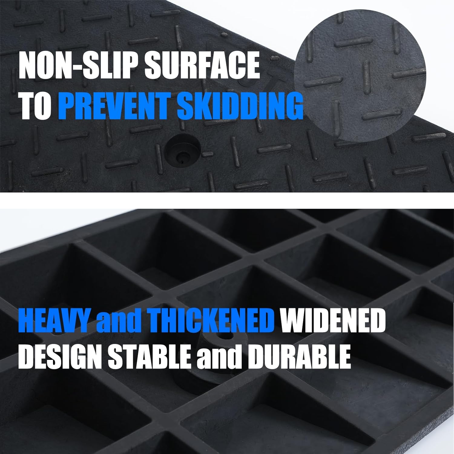 - The surface of our curb ramp features a non-slip texture which can increase friction and prevent from skidding for more safety, play a good non-slip effect in rainy or snowy days;