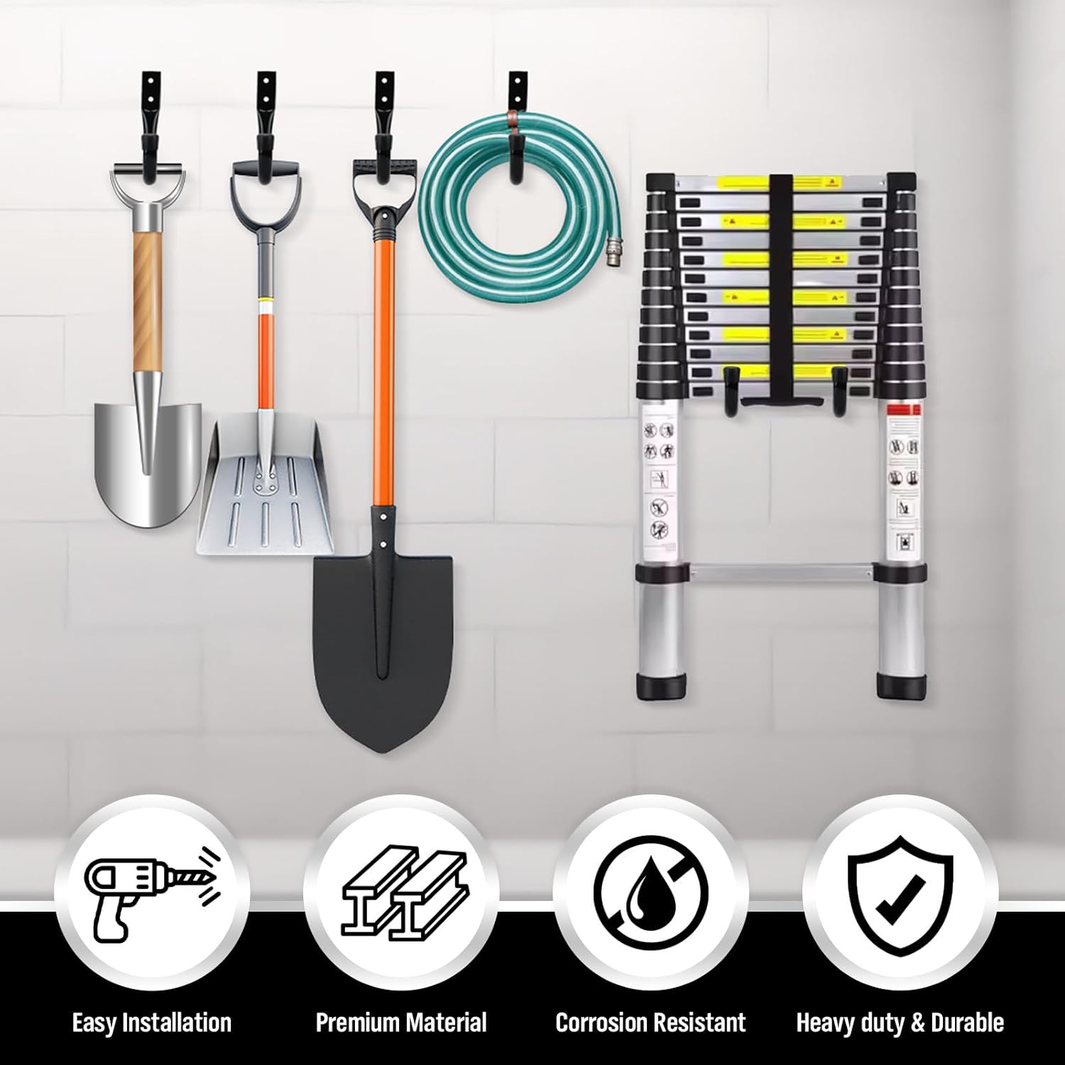 - MULTI-PURPOSE USE - These garage storage hooks are versatile, serving as the perfect solution for organizing a variety of items like ladders, bikes, extension cords, garden tools, and backpacks. Their wide utility makes them an essential accessory for any garage or storage area