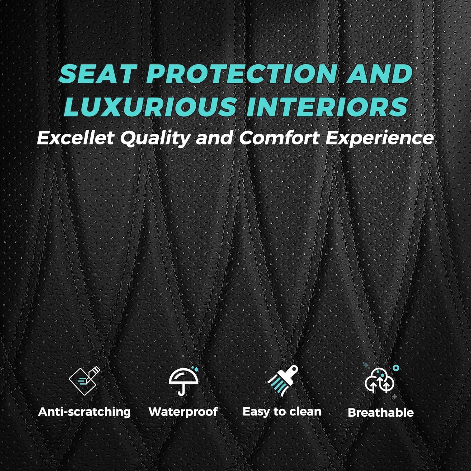 - Faux Leather - Our car seat covers are made from faux Nappa leather, providing superior protection for car seat covers. Designed with comfort, aesthetics, and longevity in mind, these leather seat covers are also waterproof, stain-resistant, and easy to clean. They are an excellent choice for individuals seeking to upgrade or protect their car's upholstery