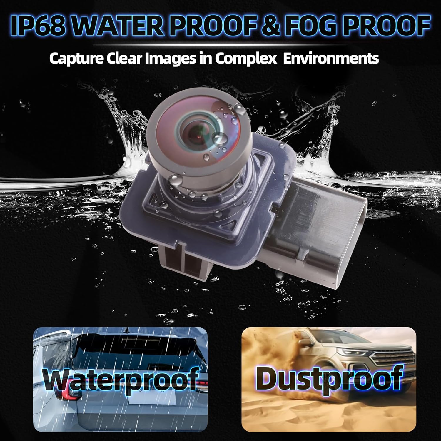 - OUTSTANDING CAMERA PERFORMANCE: (1) 8 layers of high strength glass that surface of the lens with anti-glare coating and anti-fog coating (2) Infrared (IR) and Low-Light technology of NIGHT VISION (4) IP67-rated for water and dust resistance (5) Meet Parking Assistance Systems and safety standard