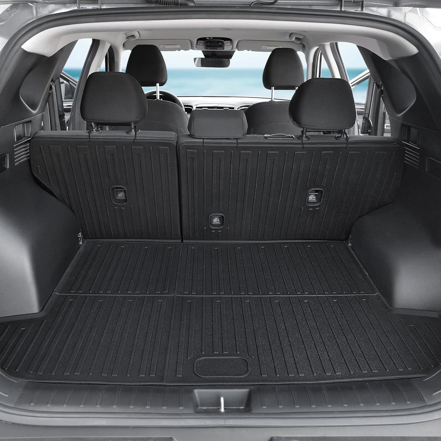 - Custom Fitment: Precisely designed with 3D laser scanning technology for 2022-2025 Hyundai Tucson. Cut to fit the trunk with Bose subwoofer. Not fit Hybrid and Plug-in Hybrid Models(PHEV). Includes 1st & 2nd row floor mats, 2-in-1 cargo liner with seat back protectors and 4PCS door sill guards – 30% more components than standard sets