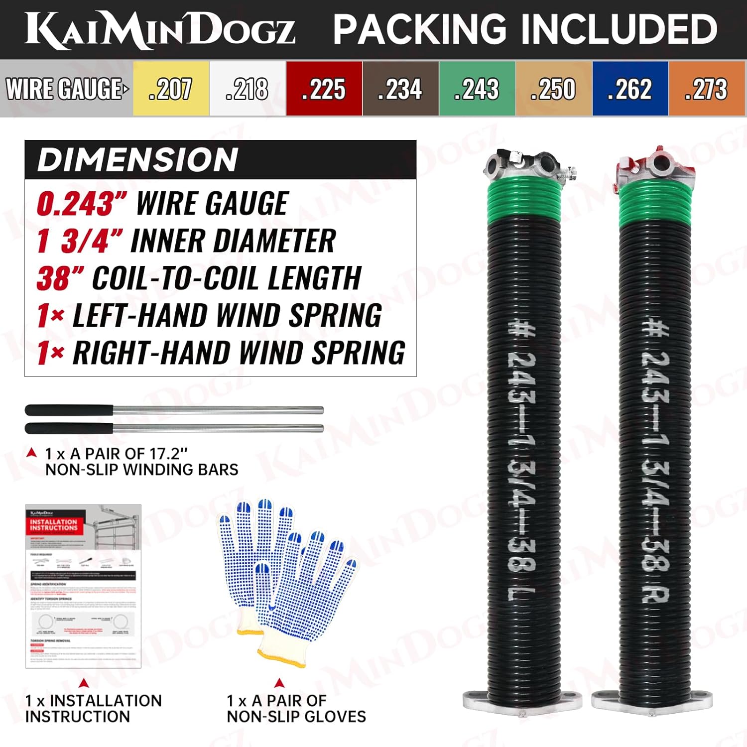 - DIMENSION : One Pair of .243” wire size x 1.75” inside dimension x 38” length Garage Door Torsion Spring. (left & right).
