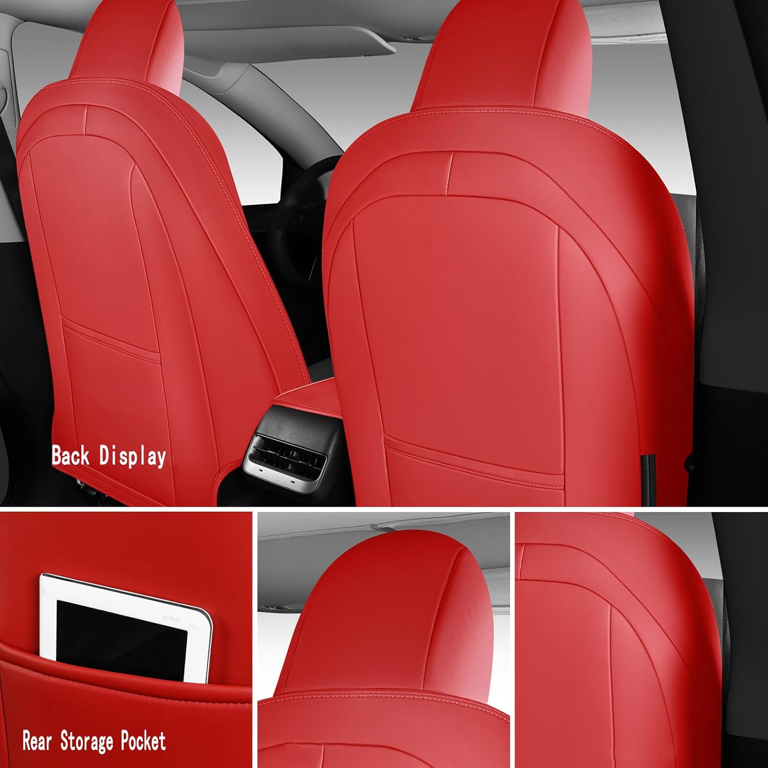 Tesla Model Y Seat Cover Full Set, Faux Leather Tesla Car Seat Cover, Perfect Suitable for Tesla Model Y 2020 2021 2022 2023 2024 2025 (Red)