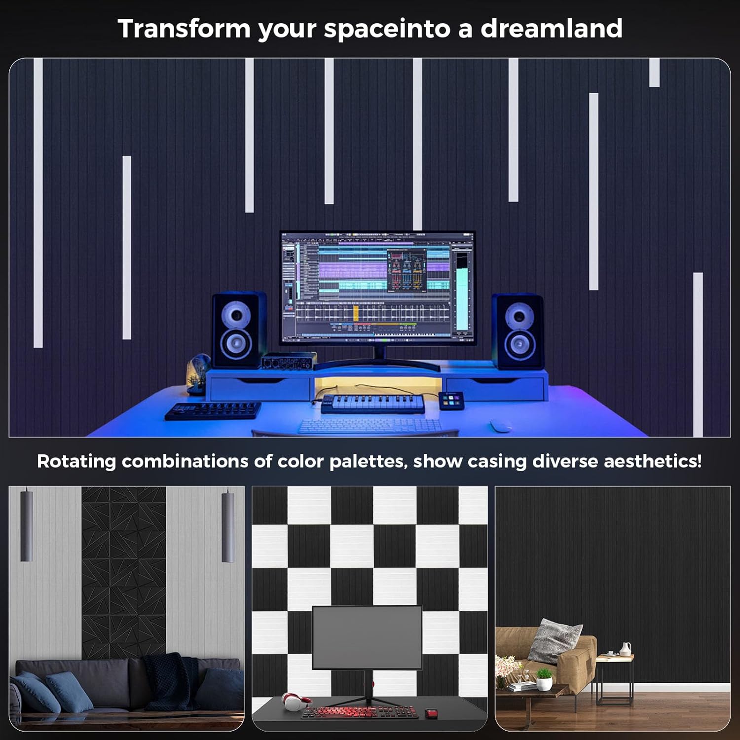 - 【Wide Range of Uses】: The elegant and generous lines of the decorative wall panels not only enhance the visual effect of the space, but we also provide a variety of color options, allowing you to create a unique space atmosphere through clever combinations, perfectly matching your various decoration styles. Noise cancelling wall panels is widely used in various scenarios such as musical instrument rooms, podcasts, recording studios, piano rooms, cinemas, living rooms, bedrooms, offices, etc