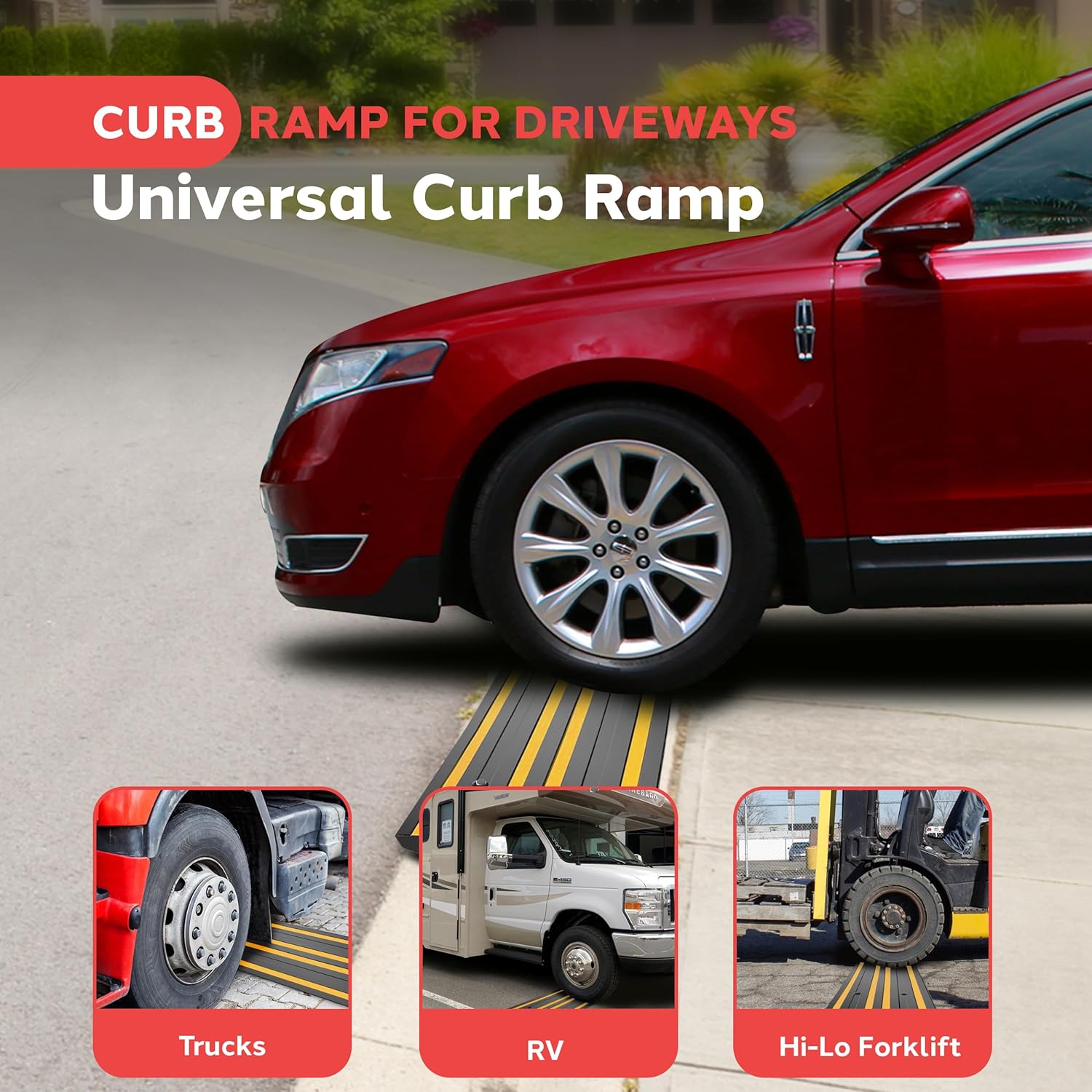 - VERSATILE AND PRACTICAL USE - Ideal for uneven curbs, gravel driveways, and more, this curb ramp offers protection for low vehicles. Its heavy and sturdy build ensures reliability, making it best suited for those needing a more permanent solution.