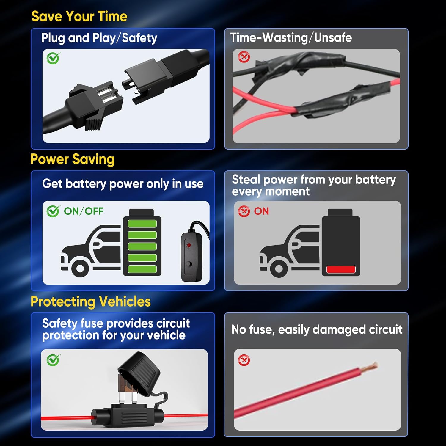 - 【Tips】Before installation, please test whether the pure white rock lights for trucks are working properly and check if the wires are long enough. For any issues, please contact us to save time and installation costs. Additionally, avoid placing wires close to heated areas inside the vehicle during installation. White rocker lights operation requirements: voltage DC 12V