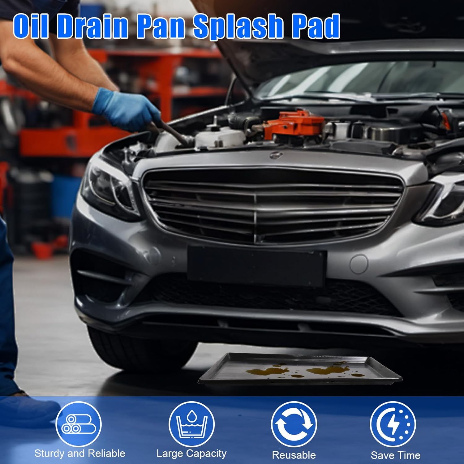 - Clean and Tidy: The large oil drain pan for oil change can be placed under any equipment at risk of leaks, and can also be used as an oil drip collection tray under the car; especially suitable for carpeted rooms and hardwood floors, it is easy to clean, wipe clean, and can be reused, saving you time and energy