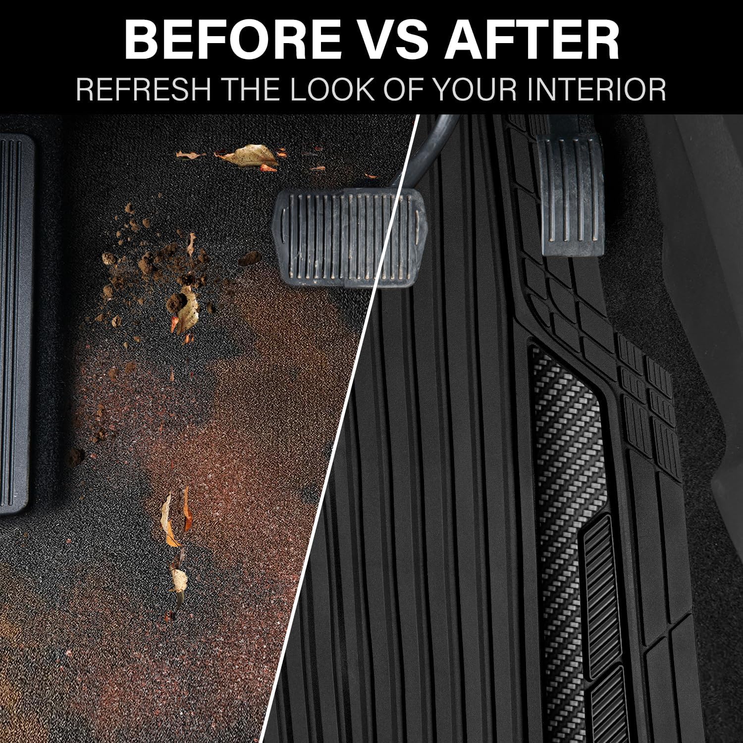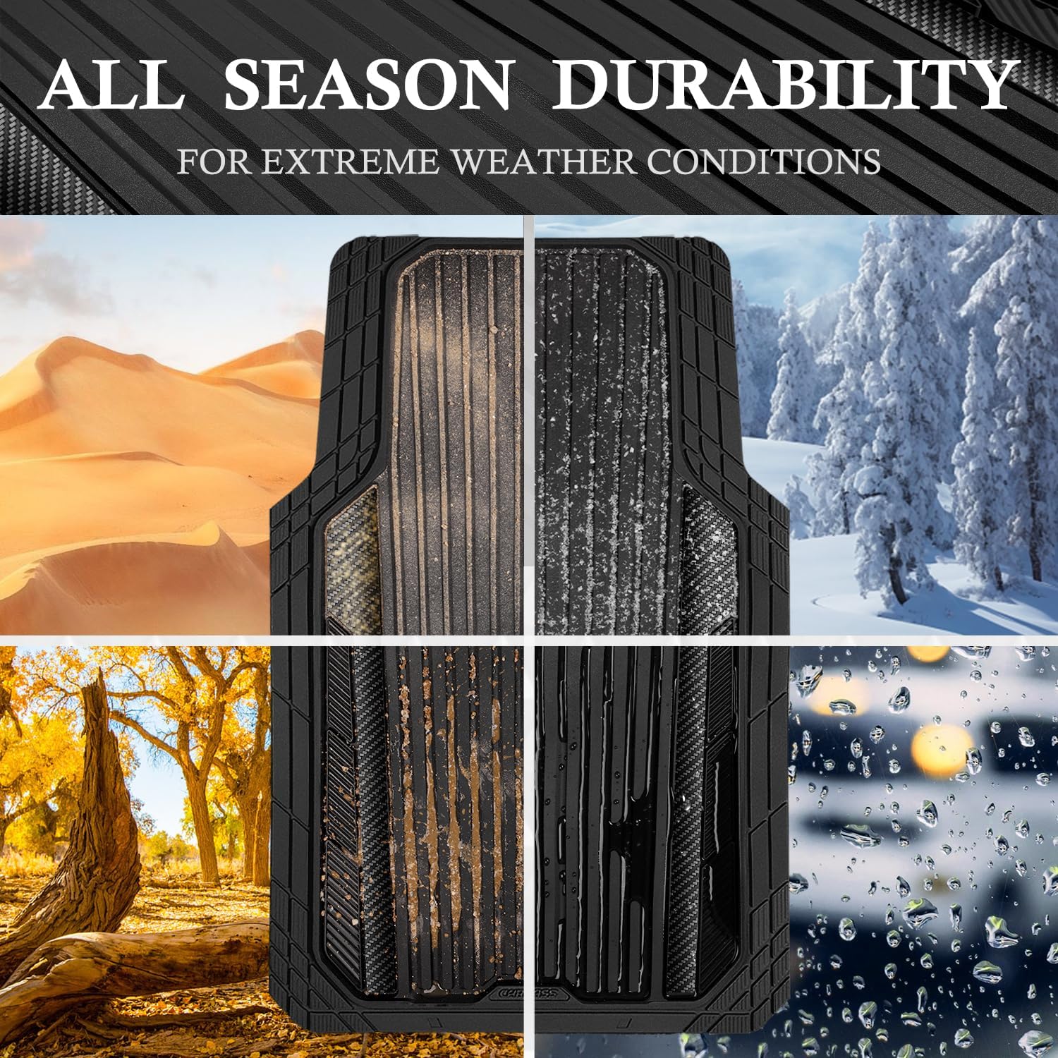 - 【All Weather All Season Protection】CAR PASS heavy duty rubber car mats use for all season.Ridge channels specifically design to prevent fluids from leaking onto carpets,the deep channels also trap any mud, dirt, water or snow that gets in your car.