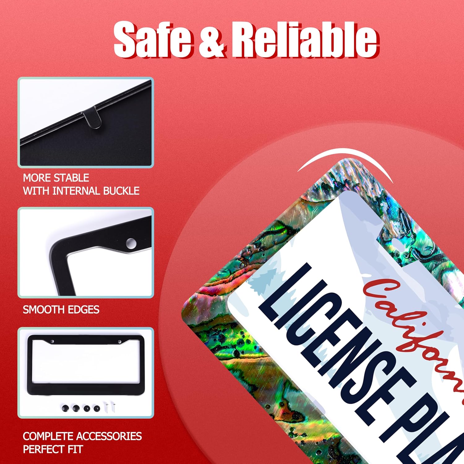 - 【Standard License Plate Size】:Our license plate frame size is 12.2 x 6.3 inches. This license plate frame will fit most of the standard license plates in the United States and Canada, and perfectly match your car license plate accessories.
