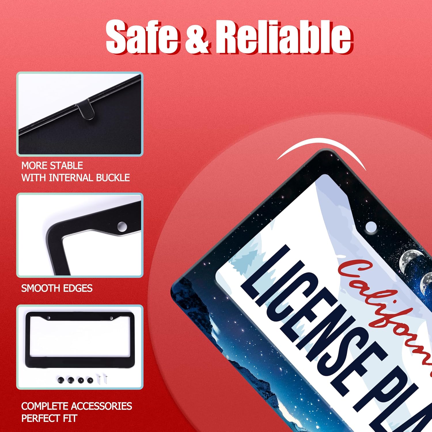 - 【Standard License Plate Size】:Our license plate frame size is 12.2 x 6.3 inches. This license plate frame will fit most of the standard license plates in the United States and Canada, and perfectly match your car license plate accessories.