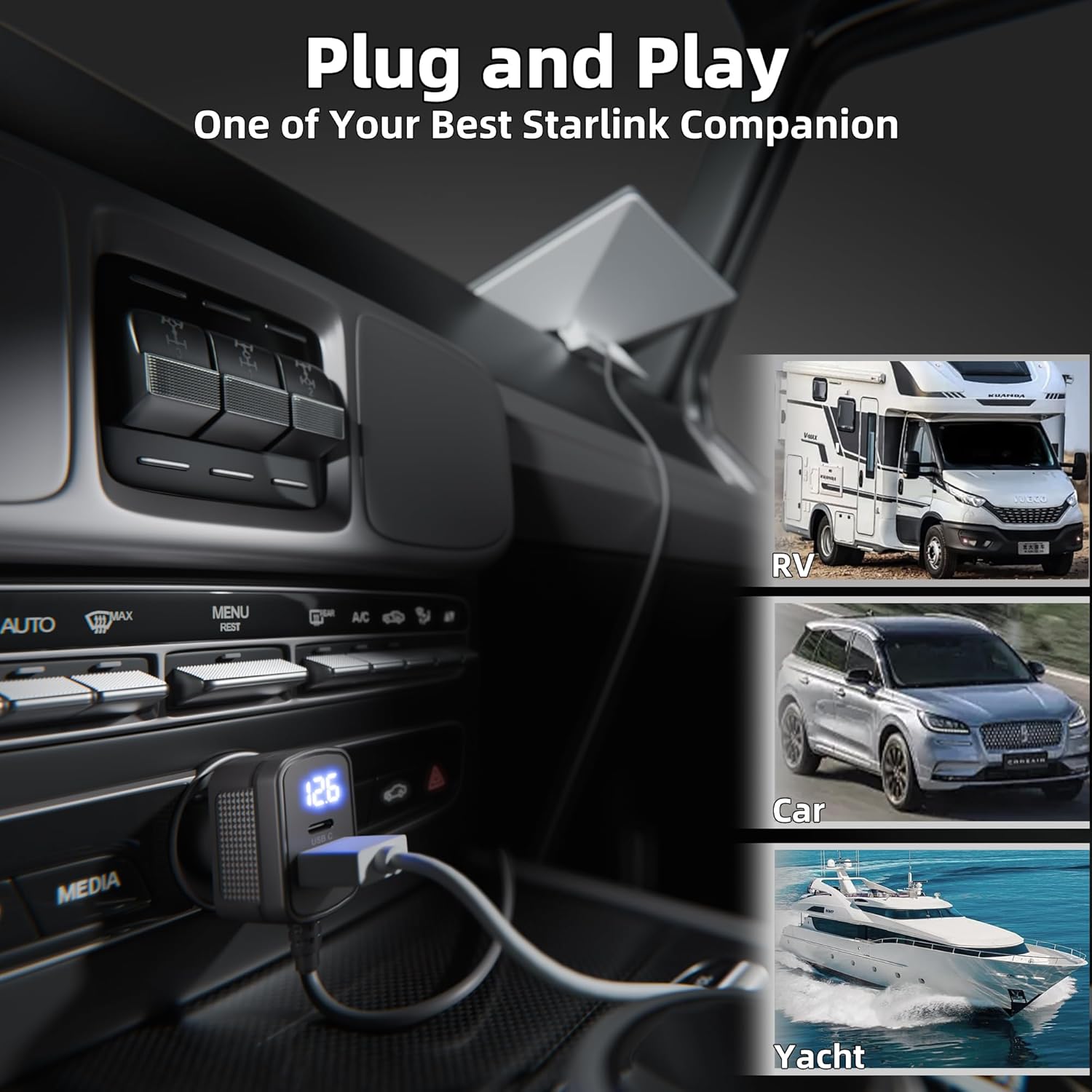 - Perfect Compatibility & Easy to Use: Designed specifically for starlink mini, this power cable comes in a simple, portable package that is easy to bring. And this power cable is designed to be plug-and-play for maximum convenience, which offers instant setup and operation. Also, this power cable seamlessly connects to any 12V-24V vehicle socket. making it ideal for travel, camping, or remote work.