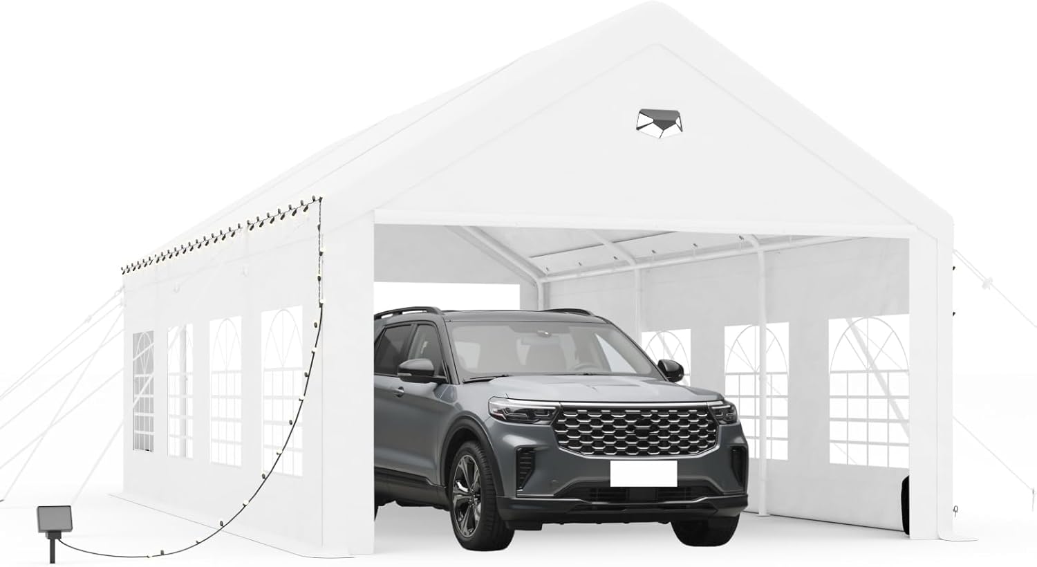- 【Great Value Package】: This car port offers excellent value with high-quality materials and added bonuses like solar lights, a light belt, bindings, and windproof sandbags—all included with your purchase.