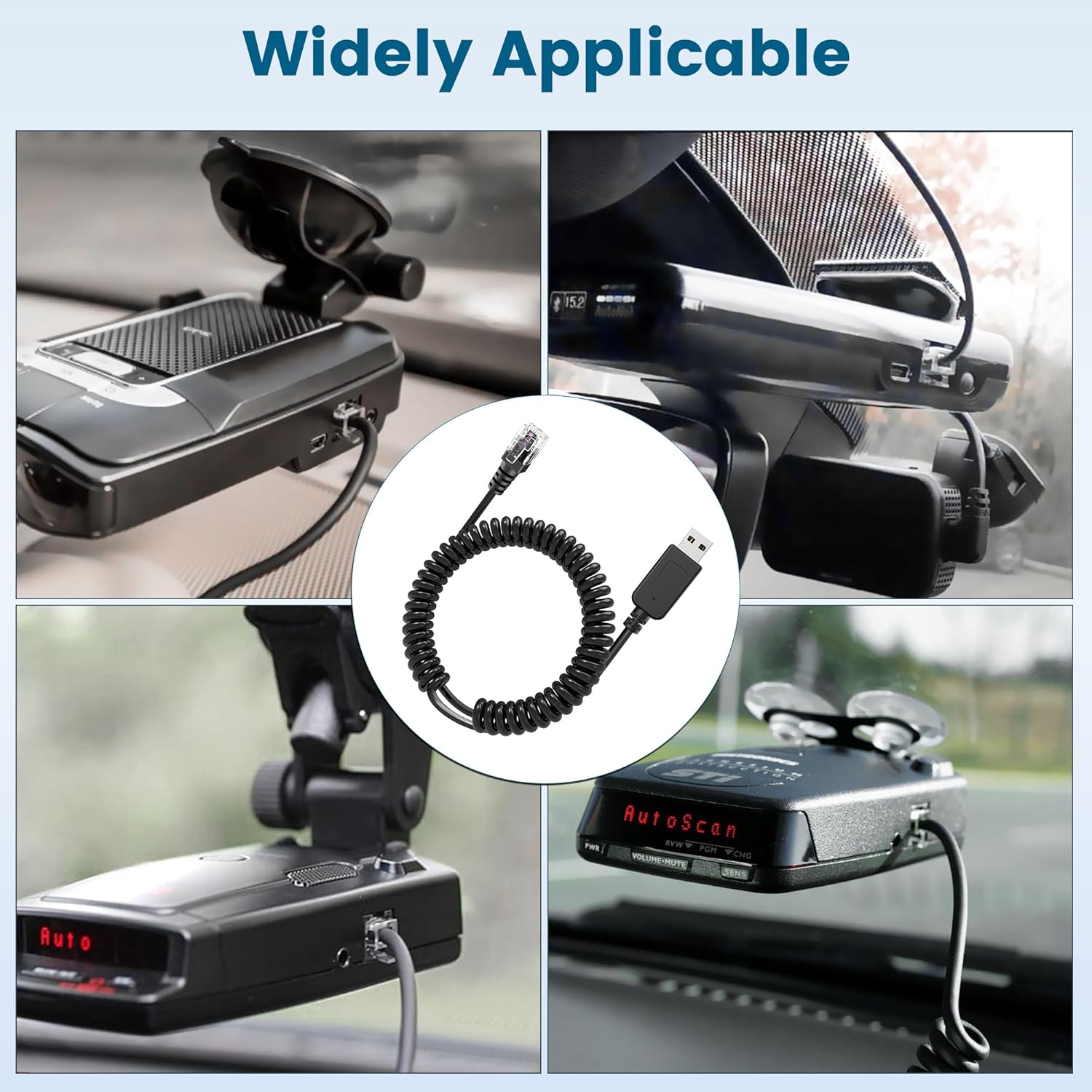 Radar Detector Cable, USB 2.0 to RJ11 Plug Cable 5V-12V Power Cord, Compatible with R3/7/1, Escort 360 Passport 9500i/7500S/8500/7500 and Other Radar detectors