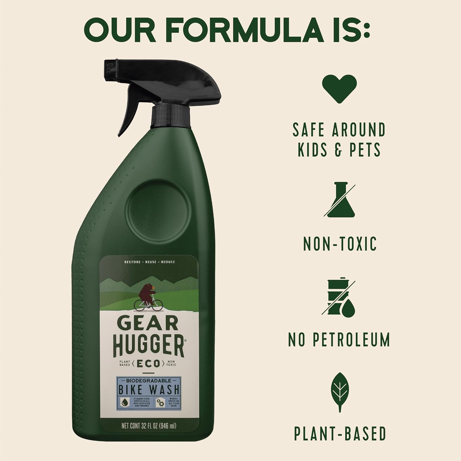 - EFFORTLESS APPLICATION, MINIMAL SCRUBBING – Cleaning your bike is simple with Gear Hugger Bike Wash. Spray on and let it work, using little elbow grease to achieve a thorough clean. Designed to lift tough stains and grime without requiring expensive tools, this bike wash soap is your go-to for easy, effective results. Just wash using gentle rubbing for stubborn spots, and rinse away to reveal a pristine finish—ideal for those who prefer quick, low-effort maintenance.