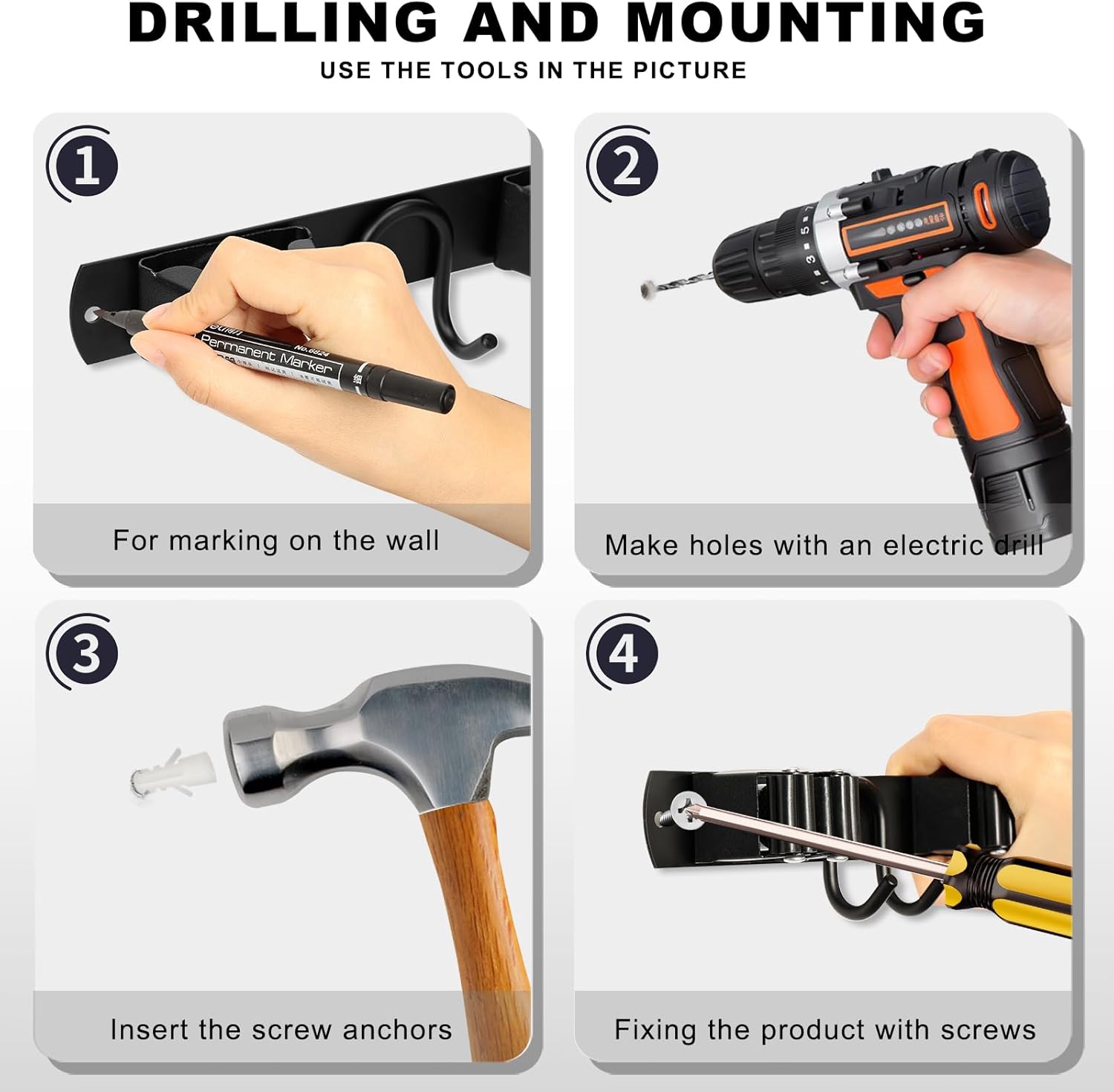- STRONG LOAD-BEARING: The broom holder has been designed with three screw holes. Once installed, it can hold up to 55LB without falling off. The packaging includes all the necessary hardware for installation, allowing you to easily complete the process within 15 minutes