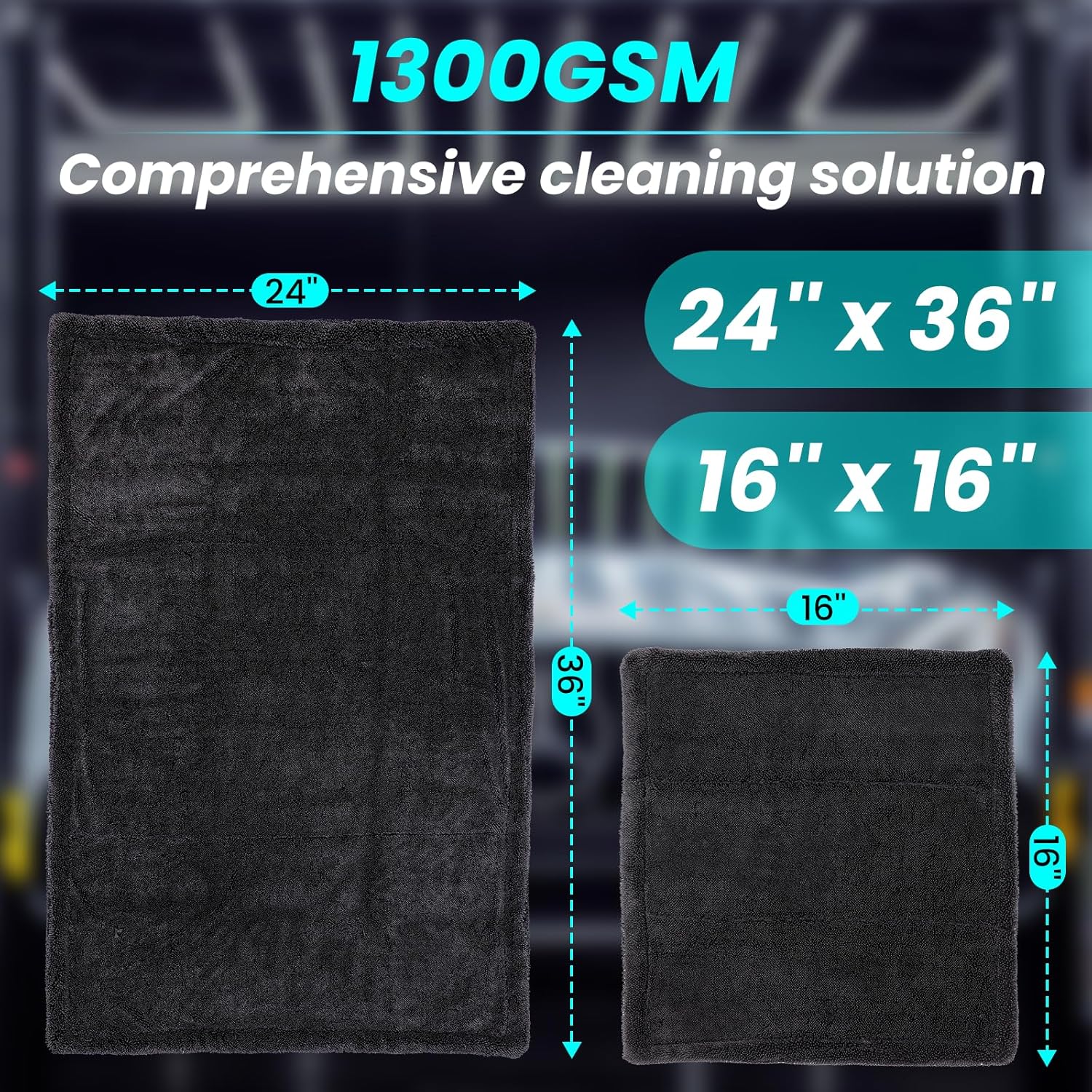 2 Pack 1300 GSM Car Drying Towel,Double-Sided Microfiber Towels for Cars(24'' x 36''&16 ''x 16''),Extra Large Ultra Absorbent,Without Residual Lint,Scratches or Water Spots