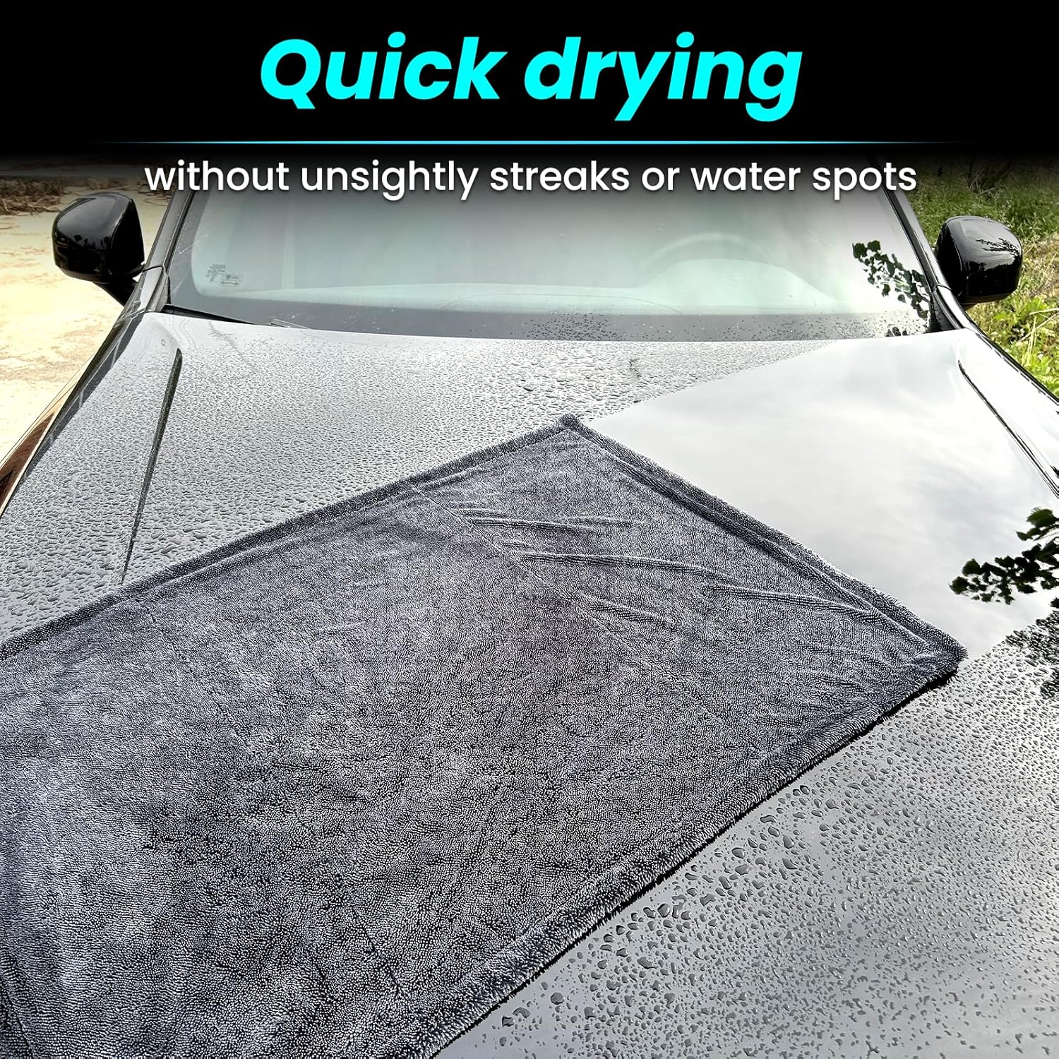 - Ultra absorbent:This car wash towel with Twisted-Loop Technology,thickness 1300 GSM,effortlessly soaking up water without unsightly streaks or water spots,It's like magic,you can dry an entire car in one pass,reduces drying time by more than half
