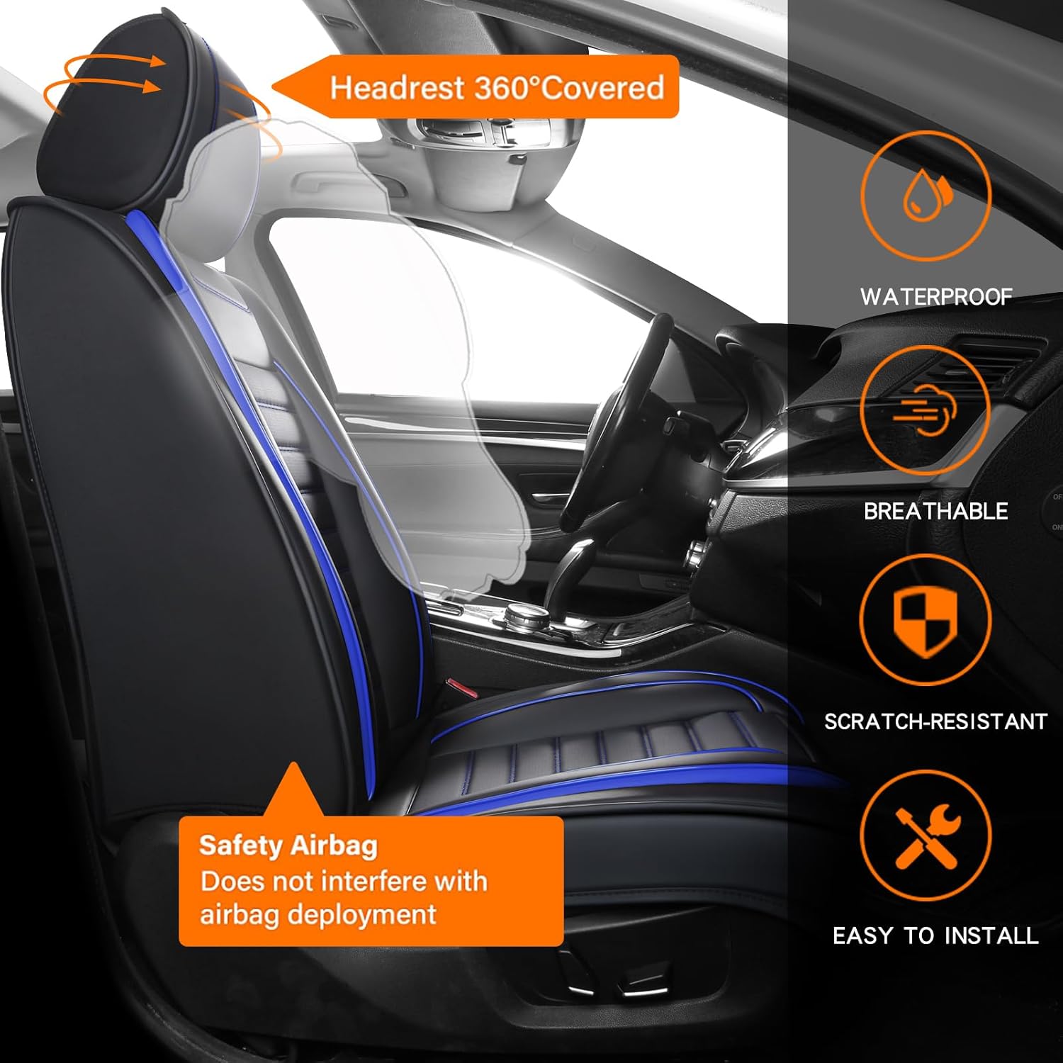 - ❤ 【Maintain Functionality】: The waterproof seat covers are engineered around the car, keeping the seat's full function and control, such as airbag, seatbelts, armrests and seat adjustments. Separate headrest covers allow easy headrest adjustment for optimal comfort and safety.