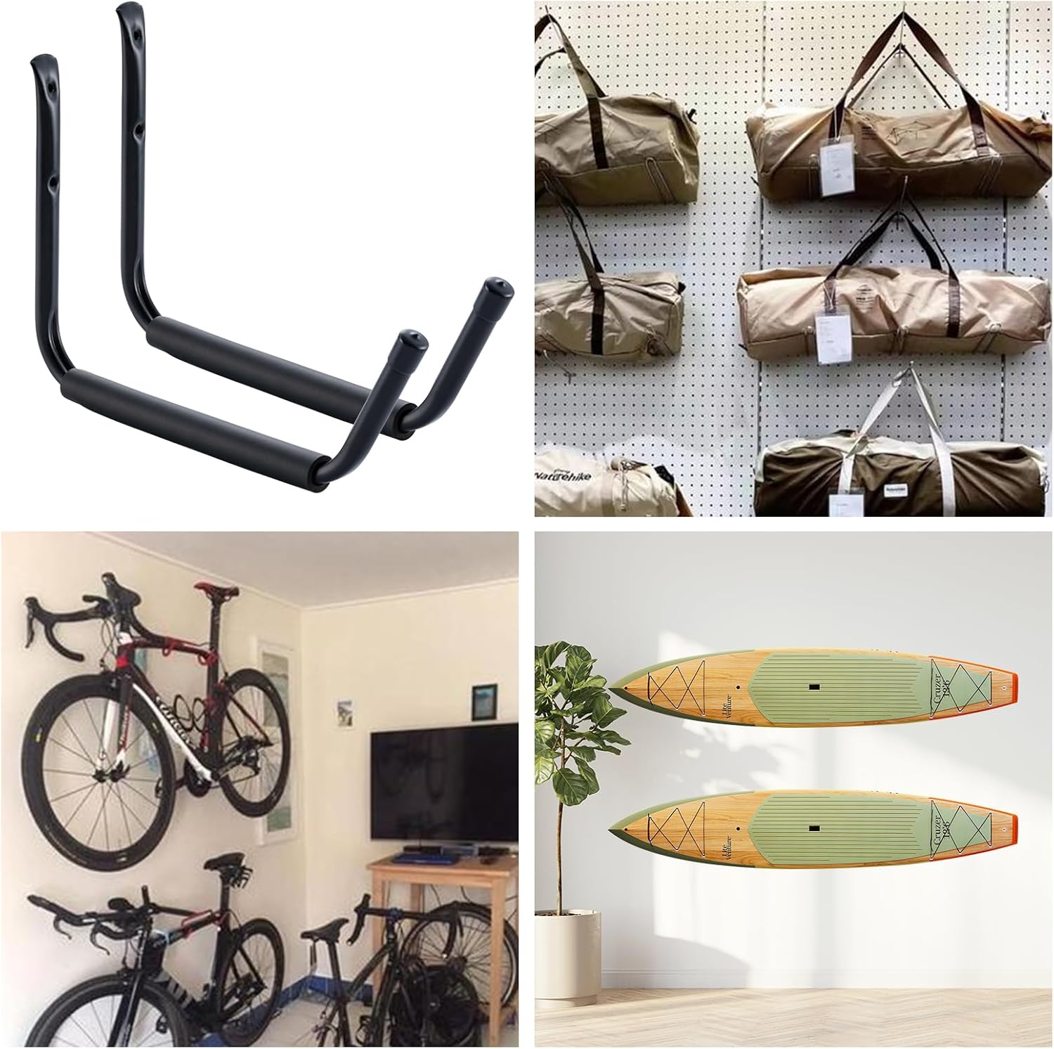 - 15" Jumbo Arm for Large Items With a 15-inch length, these hooks easily accommodate large items up to 13 inches in width—ideal for kayaks, canoes, ladders, bicycles, surfboards, snowboards, and lumber. The extra-long arm ensures a secure fit for bulky gear.