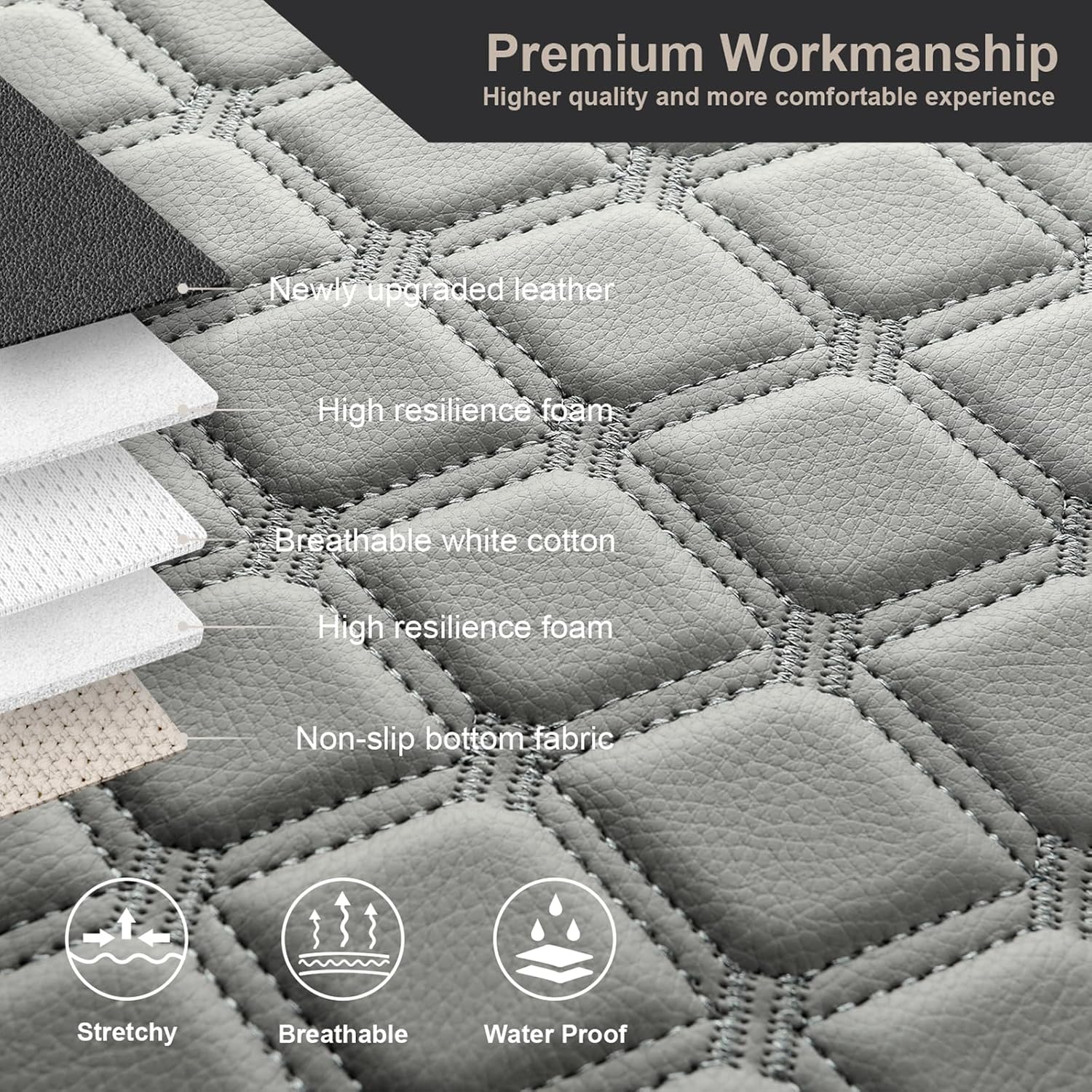 - 【MATERIALS AND PROTECTION】Selected soft faux leather for excellent abrasion resistance and water resistance. Dirt resistant and very easy to clean. A non-slip backing and elastic straps will keep the center armrest cover in place.