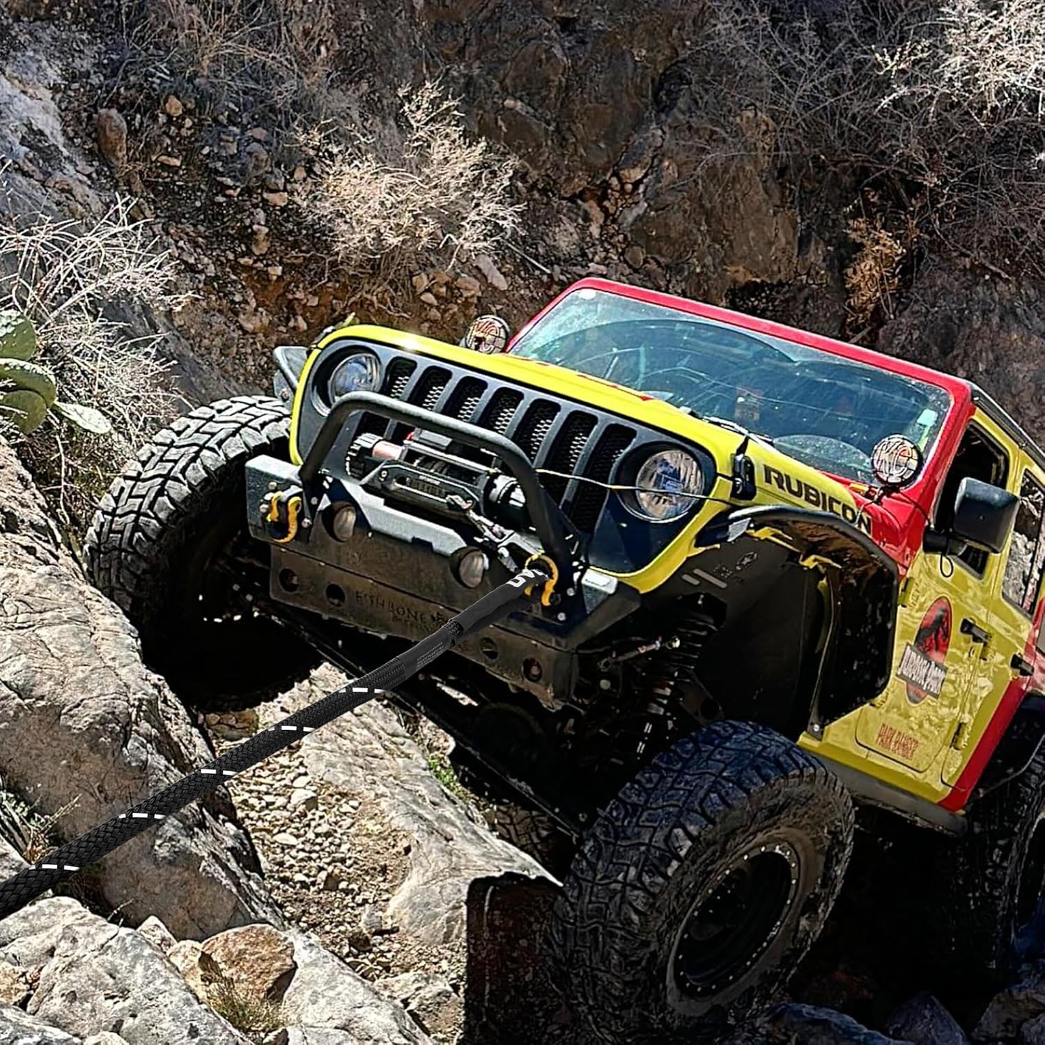 - 【Extreme Anti-Corrosion Ability】The entire surface of the tow rope is covered with a polyurethane wear-resistant coating, which has excellent resistance to UV rays and rain corrosion. The Kinetic Recovery Rope's joints are equipped with anti-wear protective covers to further enhance durability and last longer. No matter what kind of extreme weather you face, it is your rescue tool that is always on standby.
