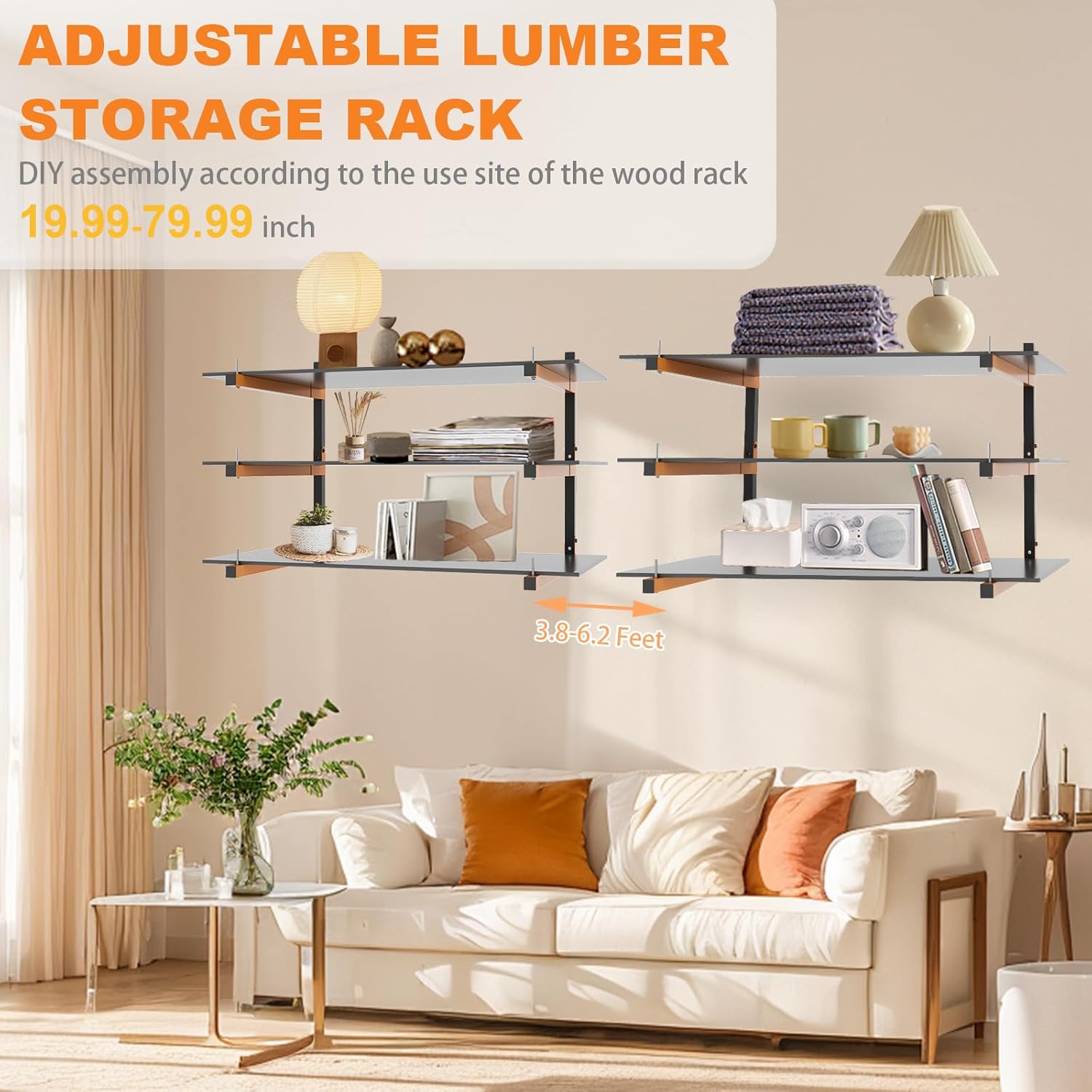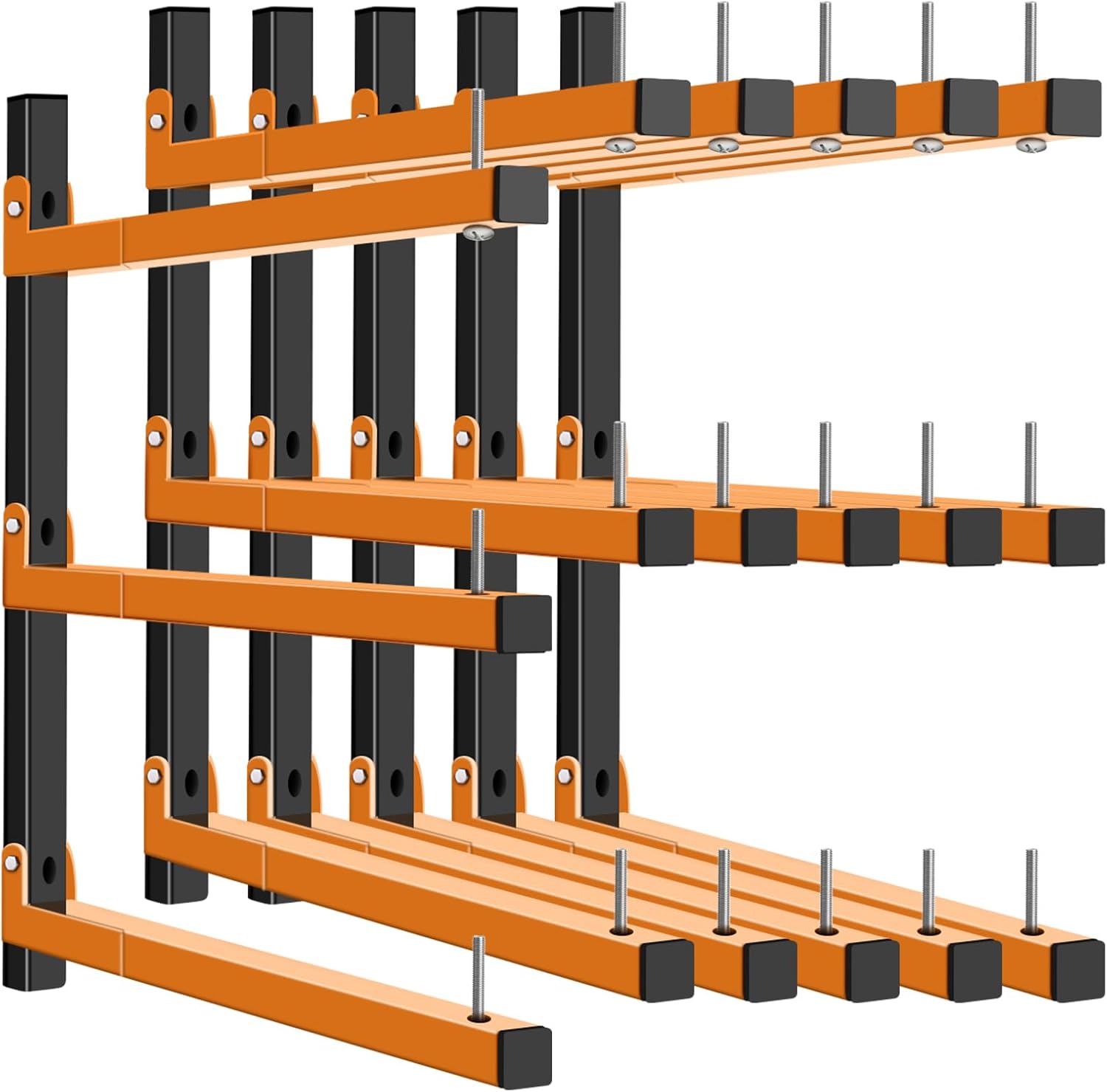 Lumber Rack Wall Mount, Heavy Duty Wood Storage Racks, 9-Level System Garage Shelving, 1080 Lbs Capacity Organizer Shelves, Folding Orange Brackets, 6 Pack Hanging Metal Shelf for Indoor and Outdoor