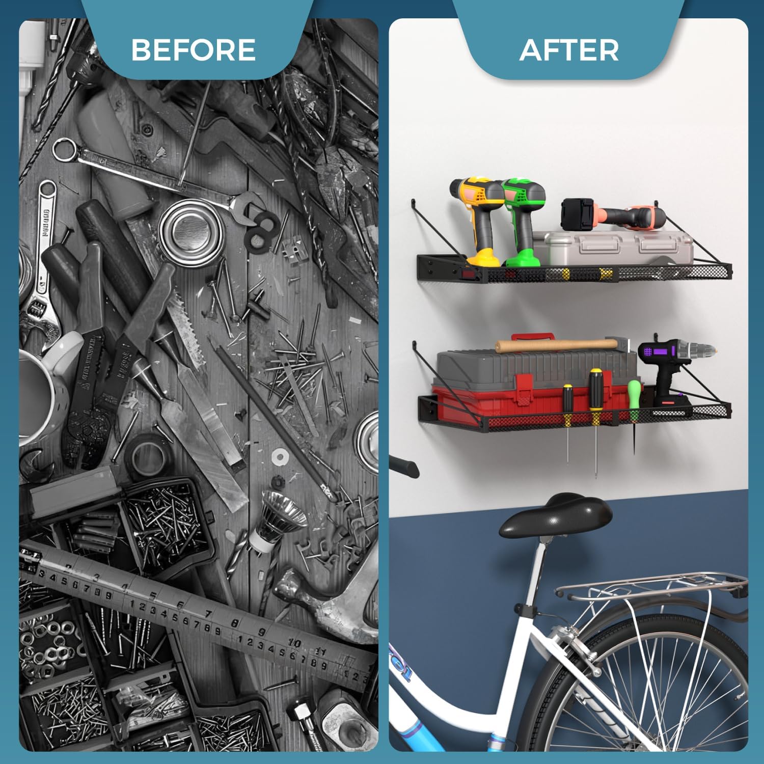 - 🗃️ Generous Storage Area: Each shelf measures 23.7" x 12", providing ample space to organize tools, bins, seasonal items, and more, keeping your garage clutter-free.