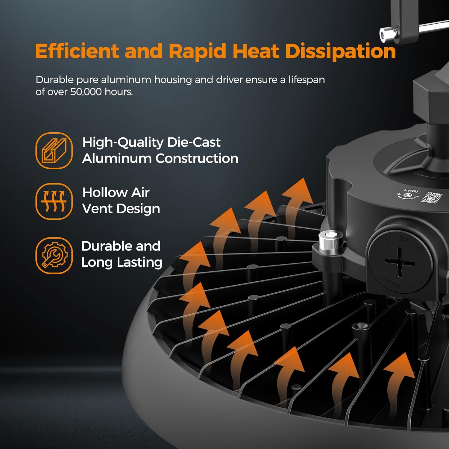 - Engineered for Longevity – 60,000-Hour Lifespan - Built with a robust die-cast aluminum housing and isolated driver, this light utilizes hollow airflow heat dissipation technology to stay cool and consistent. Lasting over 12 years at 12 hours/day, it replaces traditional 700W halogen or HPS lights while cutting energy use by up to 90%—a long-term lighting solution with minimal maintenance.