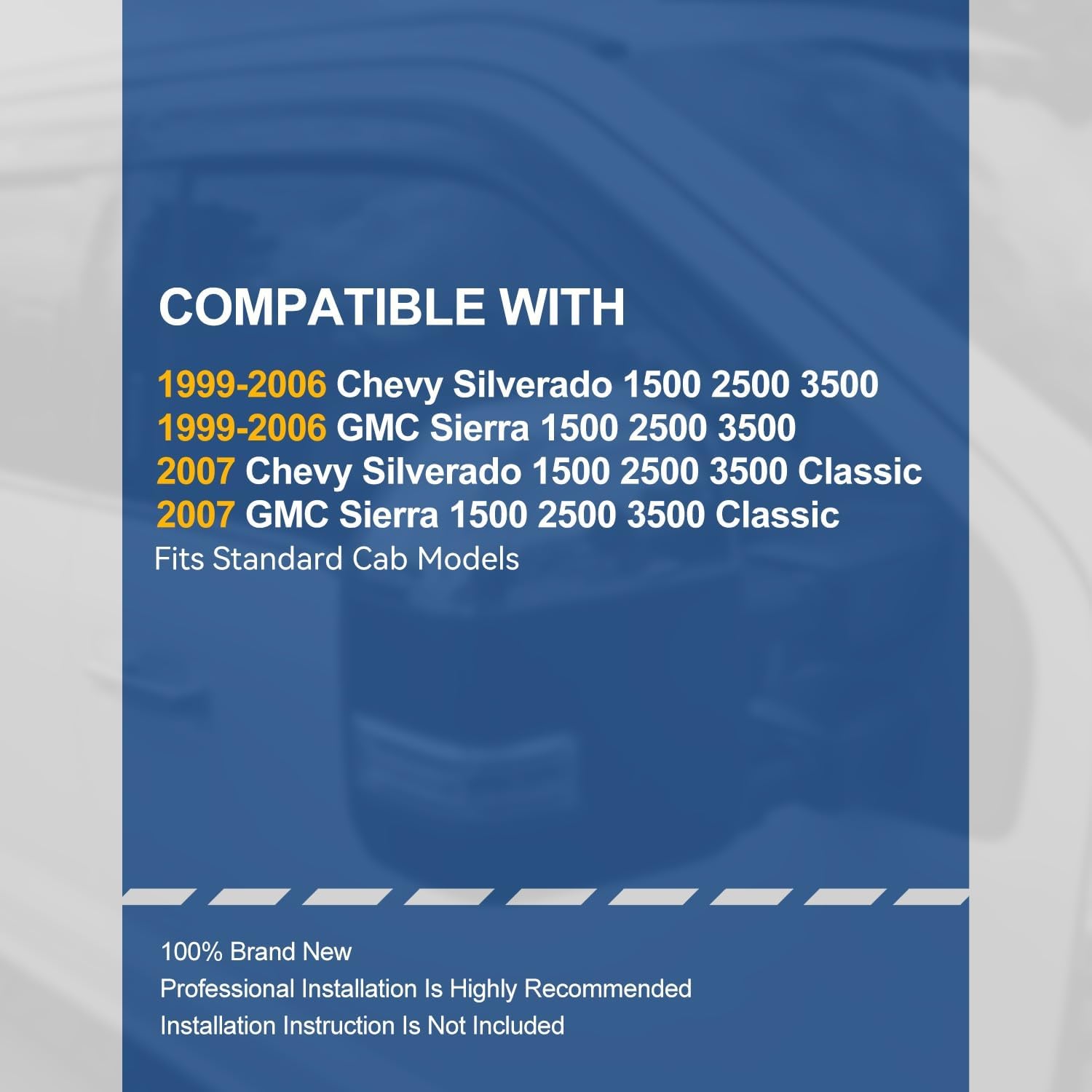 - Vehicle Compatibility - Window Visors Compatible with 1999-2006 Chevy Silverado 1500 2500 3500, 1999-2006 GMC Sierra 1500 2500 3500, 2007 Chevy Silverado 1500 2500 3500 Classic, 2007 GMC Sierra 1500 2500 3500 Classic, Fits Standard Cab Models