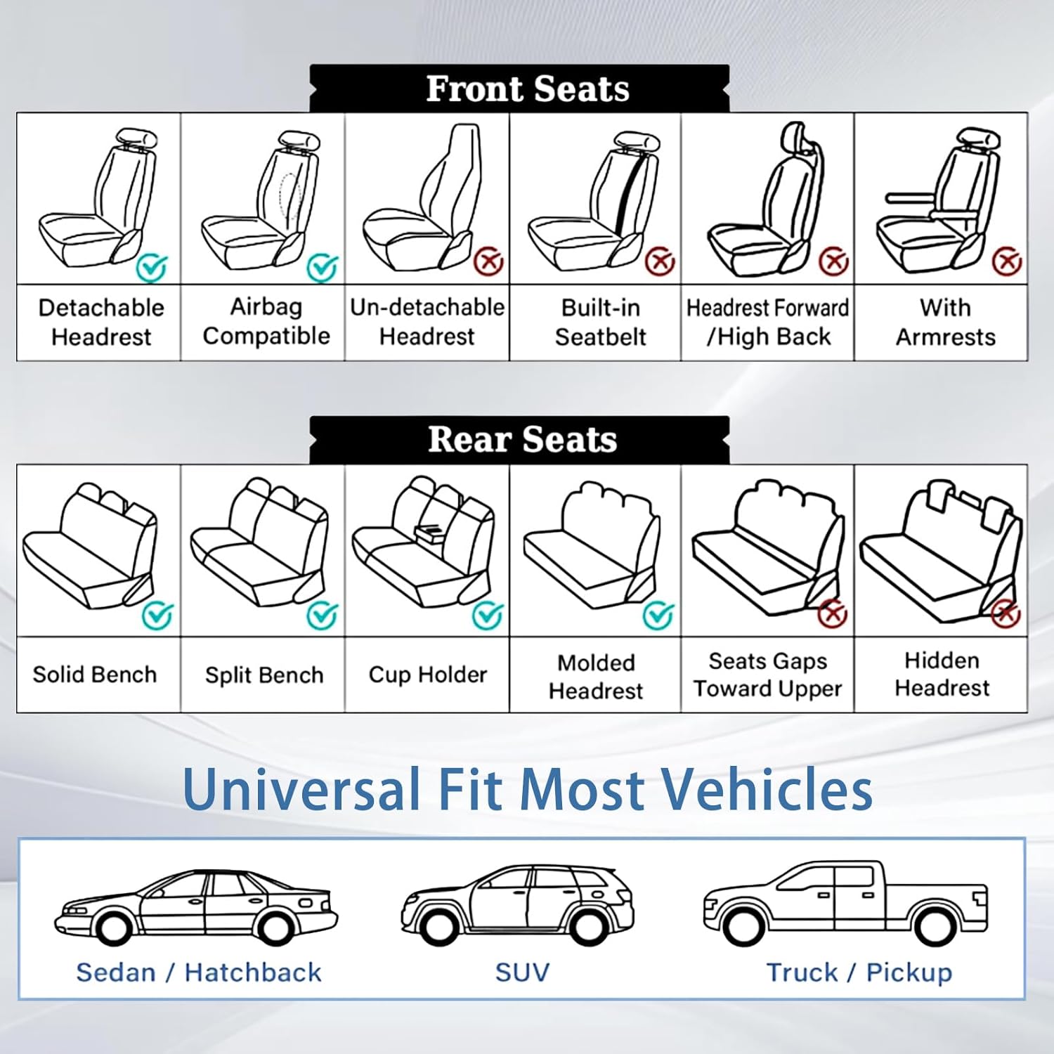 - RELIABLE CUSTOMER SERVICE: As a reliable and professional car seat cover supplier, we are committed to providing high quality seat covers and superior customer service. If you have any problems or concerns during purchase or use, please feel free to contact us, and our team will address them promptly.