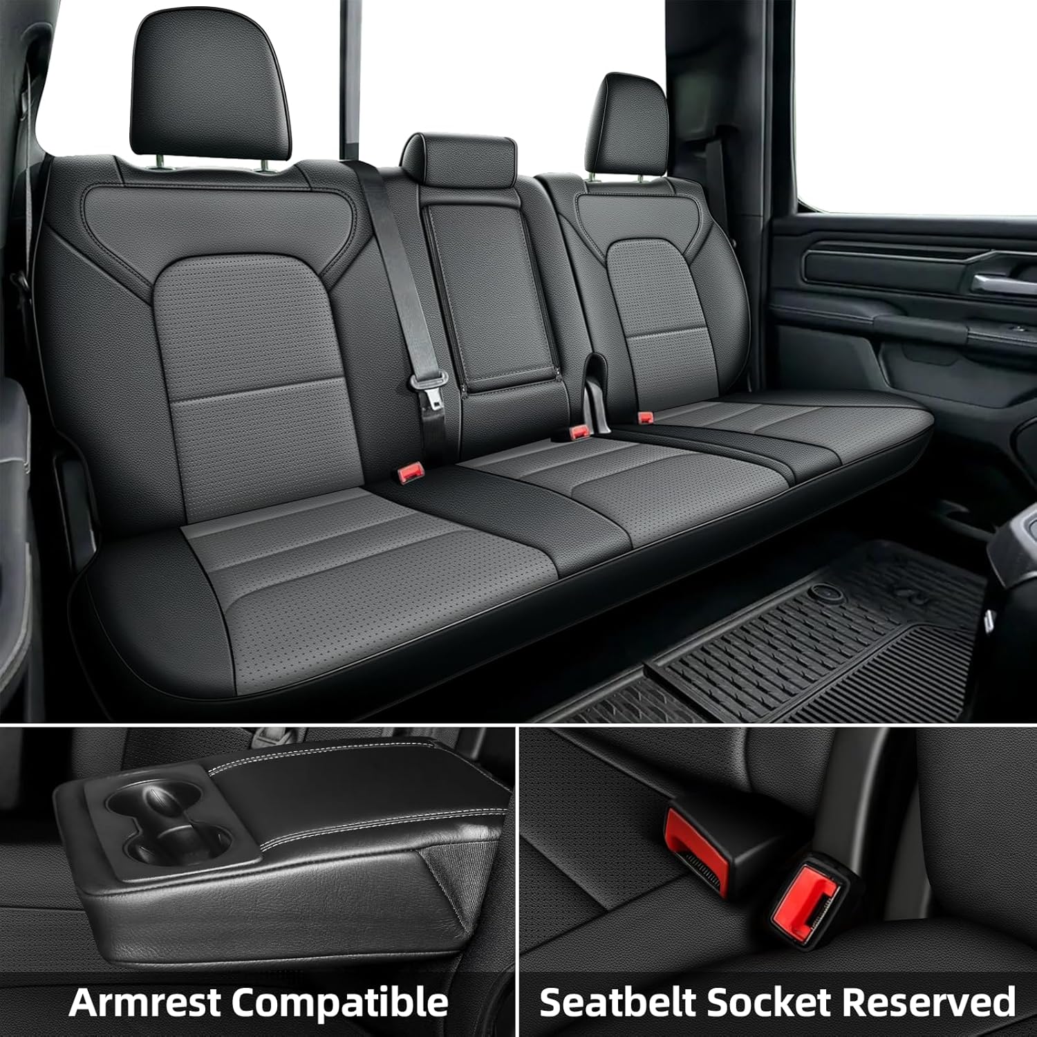- CUSTOM FIT:These high quality seat covers for trucks perfect fit for RAM 1500 2019 2020 2021 2022 2023 2024 2025 Crew Cab(Front covers only fit bucket seatsback seat 40/60 separate,pls look at pic4), we sure that every detail is considered.(Airbags,seat belts,child safety seats)