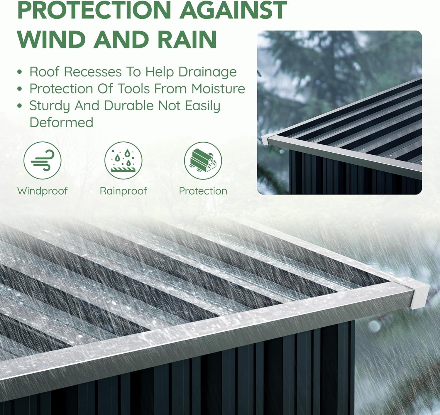 - Weather-Resistant Steel Construction: Made of high-quality galvanized steel, this shed is rust-proof, waterproof, and built to withstand various weather conditions for long-term durability.