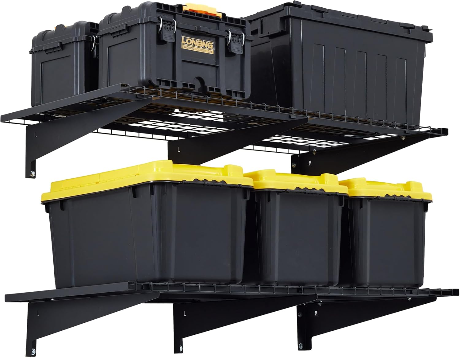 - Excellent load-bearing capacity& robust steel design: Our garage wall shelving is made of heavy-duty steel structure; Heavy-duty steel structure provides a load capacity of up to 350 lbs total per metal shelf, this set providing a total weight capacity of 700 lbs; garage wall shelves is suitable for installation in scenes such as garage and warehouse that require placement of large objects