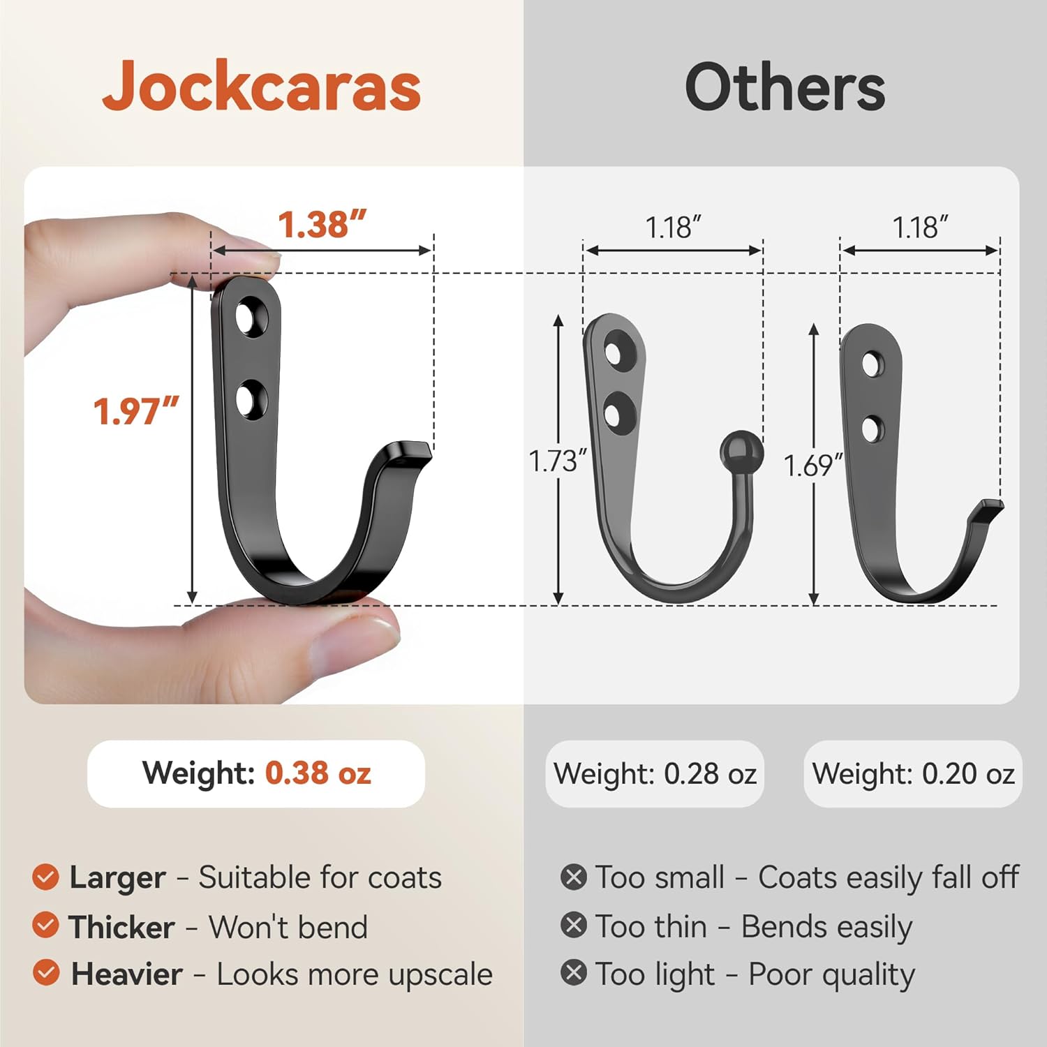 - Ideal Size: Each hook measures 1.97” H x 1.38” W, medium size, with 1” L (25mm) screws included for secure installation.