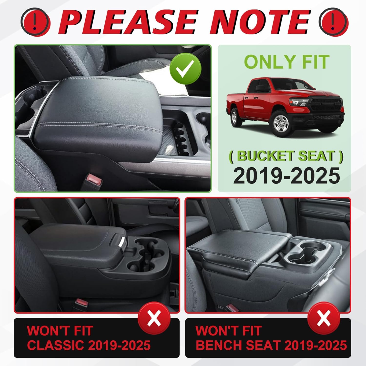 - Perfect Fitment: Designed according to 3D laser scan data to make sure it fits your 2019-2025 Dodge Ram 1500 2500 3500. Designed according to the OEM element. [PLEASE NOTE: WON'T FIT BENCH SEAT and CLASSIC/LIMITED]