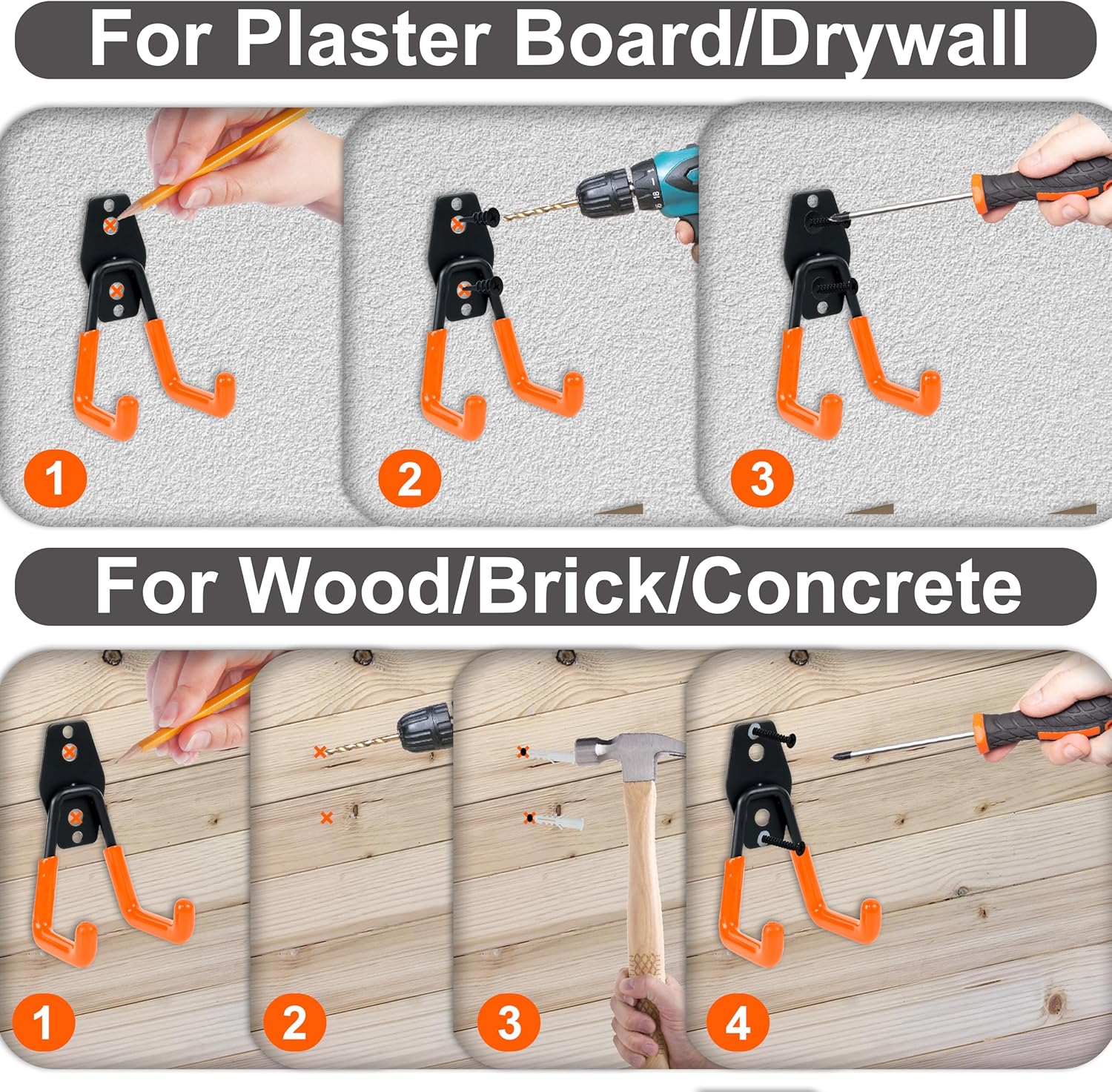 - RELIABLE WEIGHT SUPPORT - Built to hold small to medium-weight items without bending, these garage wall hooks are a sturdy and practical storage solution