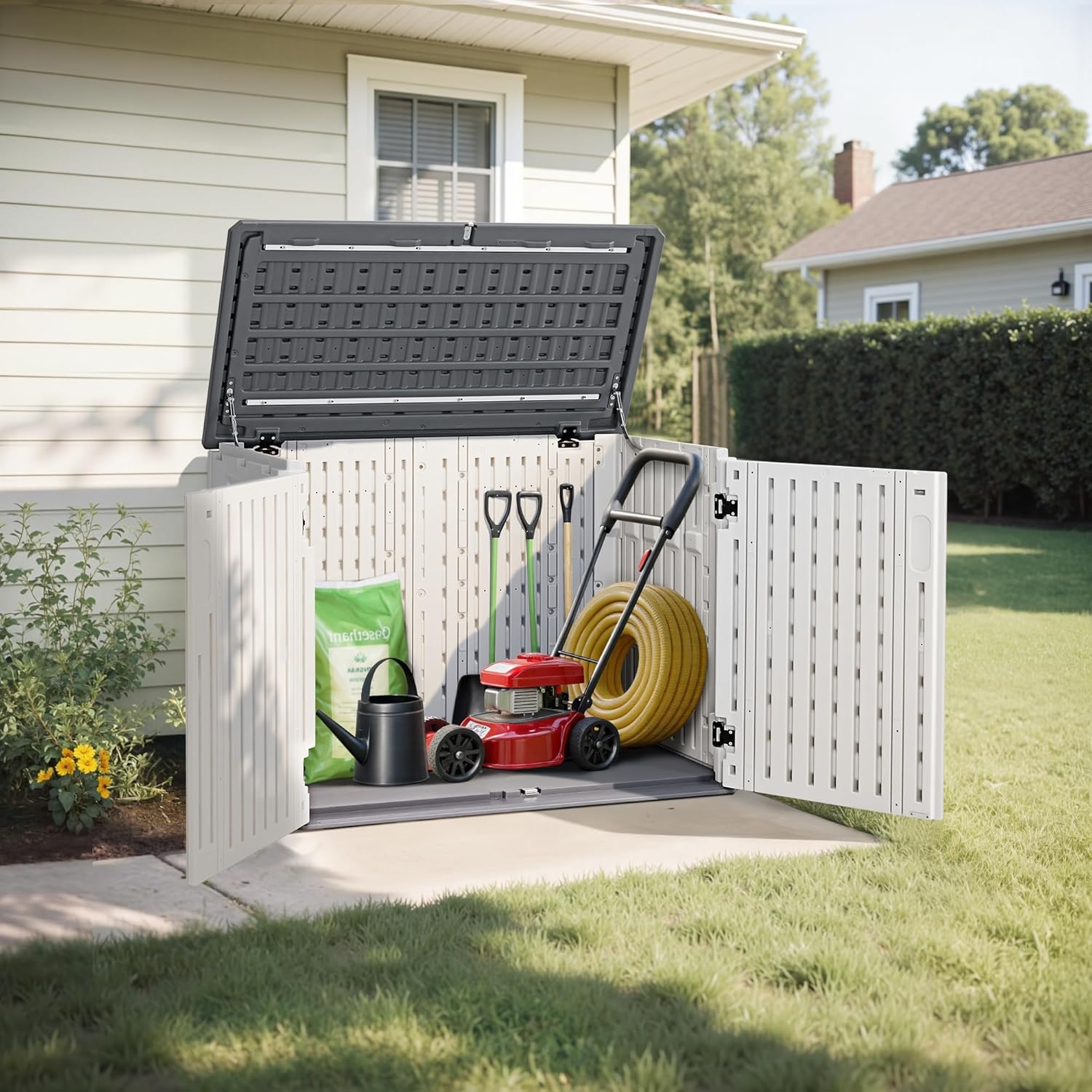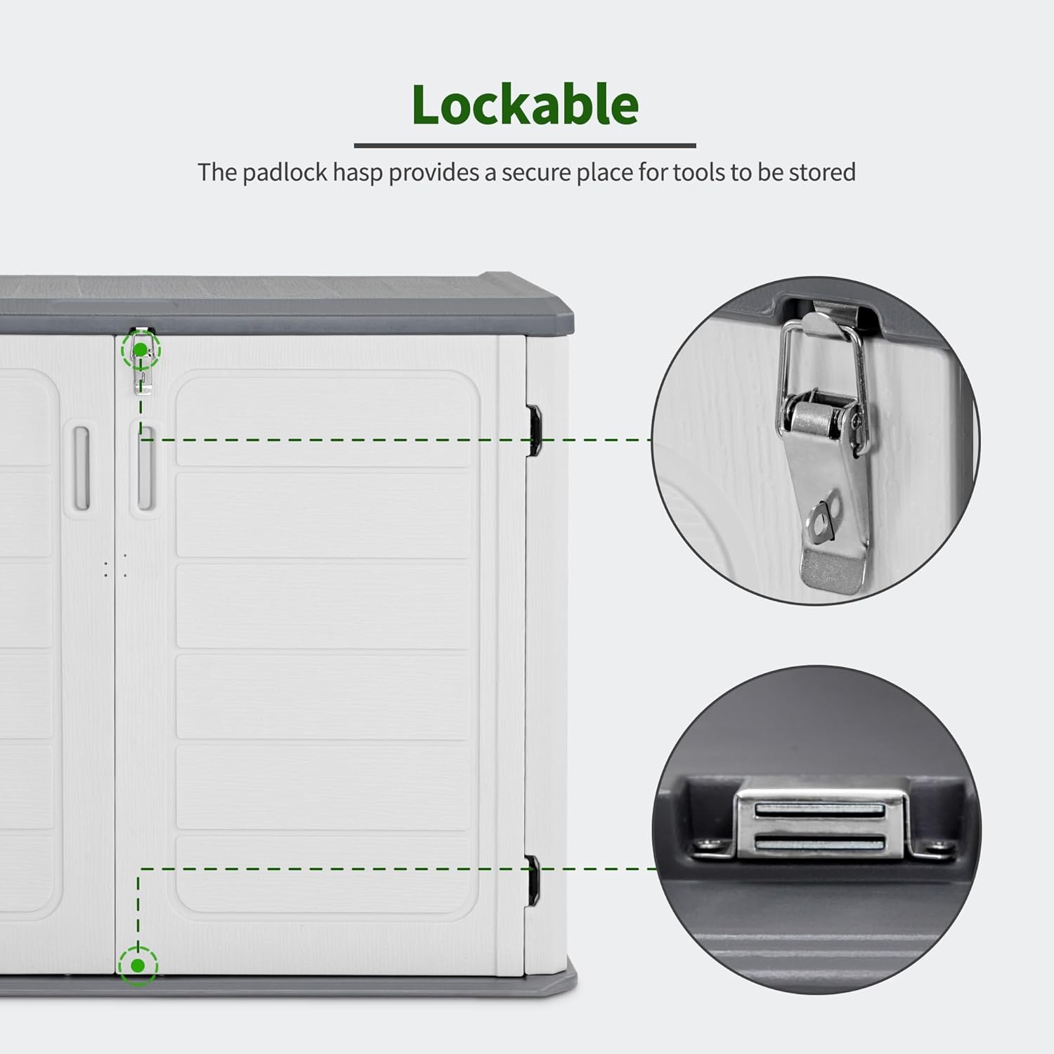 - Lockable Doors: Doors of the deck box can be locked to prevent unauthorized use from accidentally entering, providing a safe place for your tools