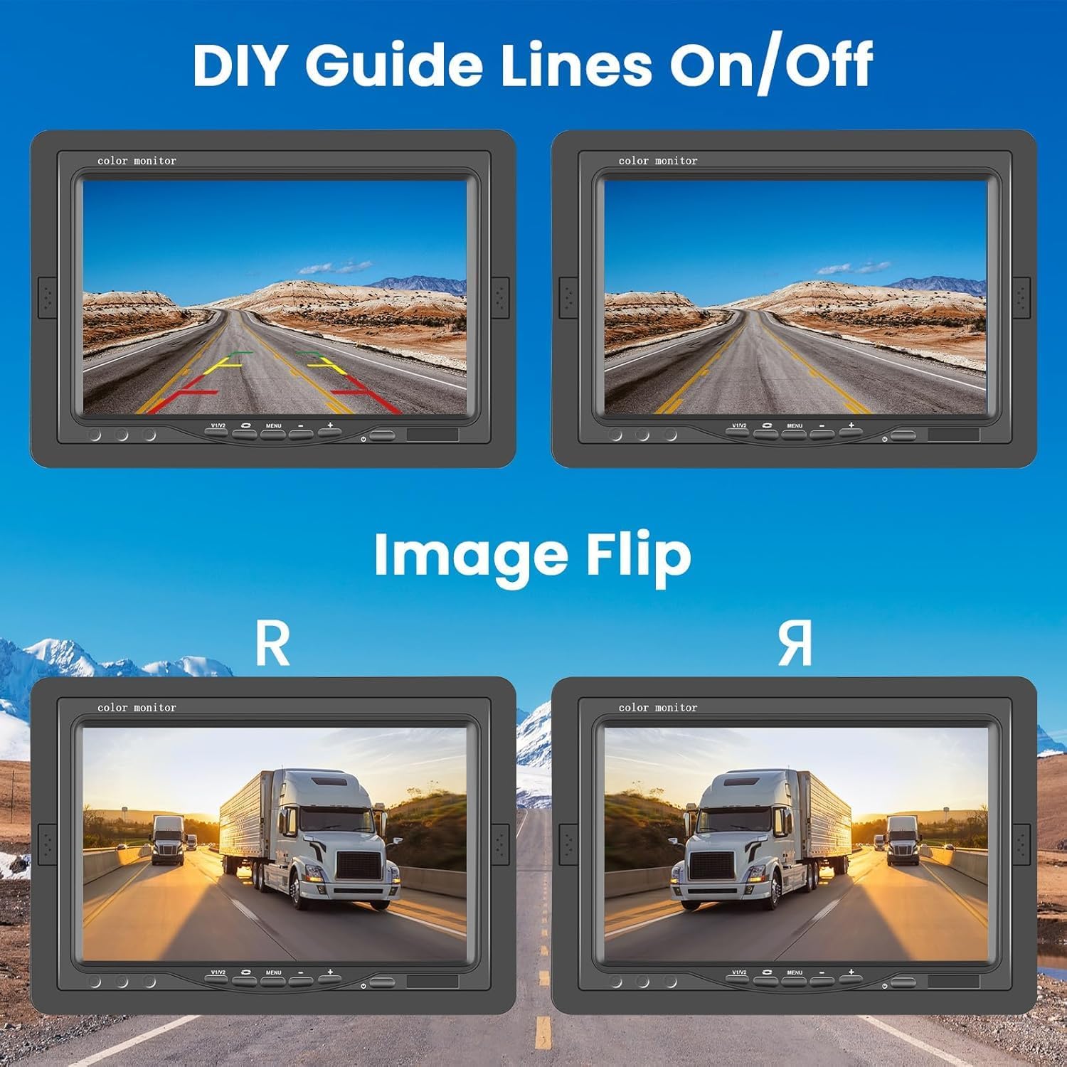 - DIY Parking Grid Line Backup Camera and Image Flip: Customize the guide lines according to your needs and flip the image with a simple button press