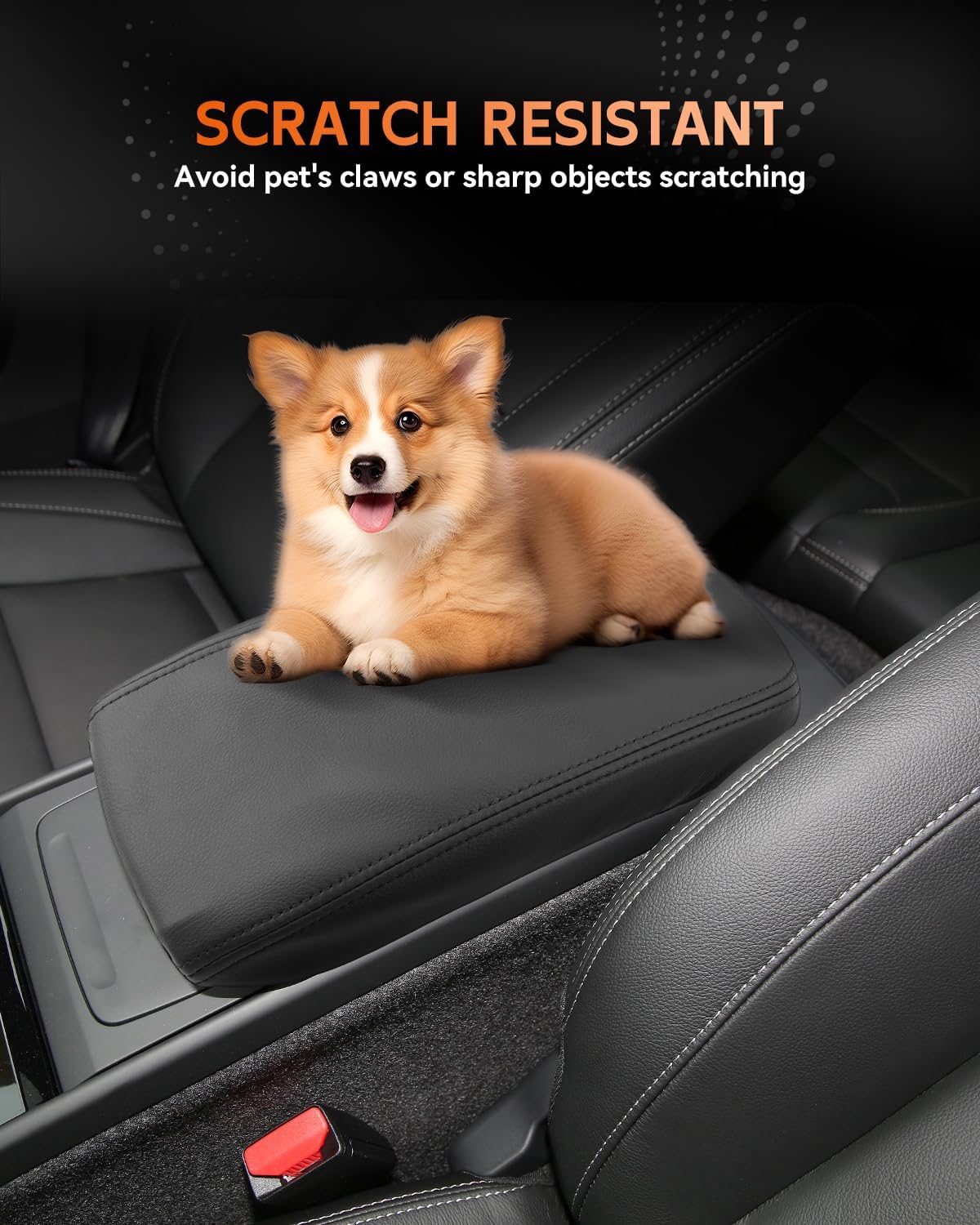 - [Excellent Scratch Resistance] The car Armrest Cover is made of high quality PU microfiber leather, thick enough to keep out pet paws, dust and sticky fingers. The surface is waterproof, wear-resistant and durable, breathable, light weight and easy to wipe clean of dirt.