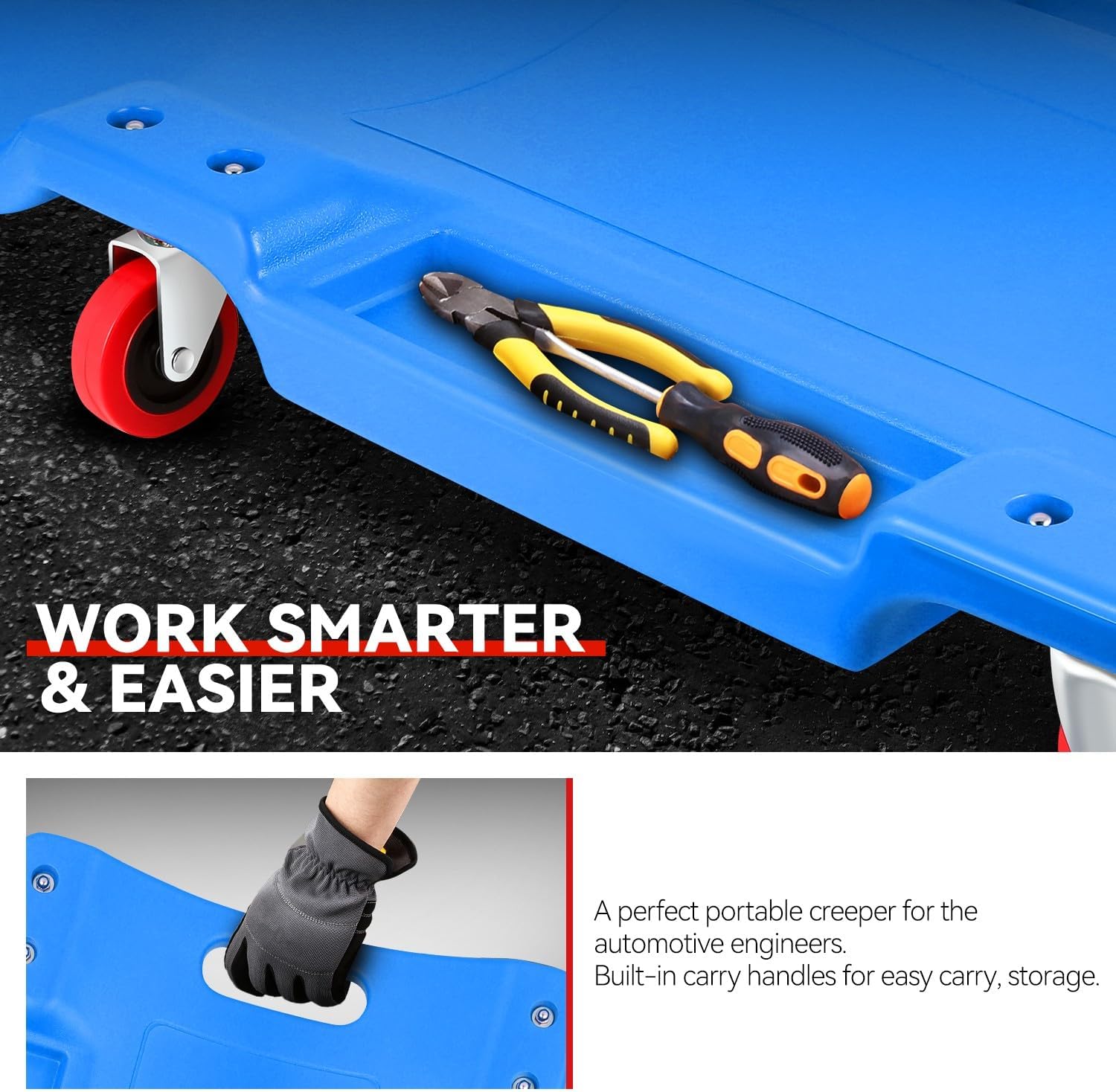 - Portable Style: This 36 inch low profile creeper can also make it easy to pick up, position, and transport with the bottom-positioned carrying handle, which ensures the work in your garage or workshop with ease.