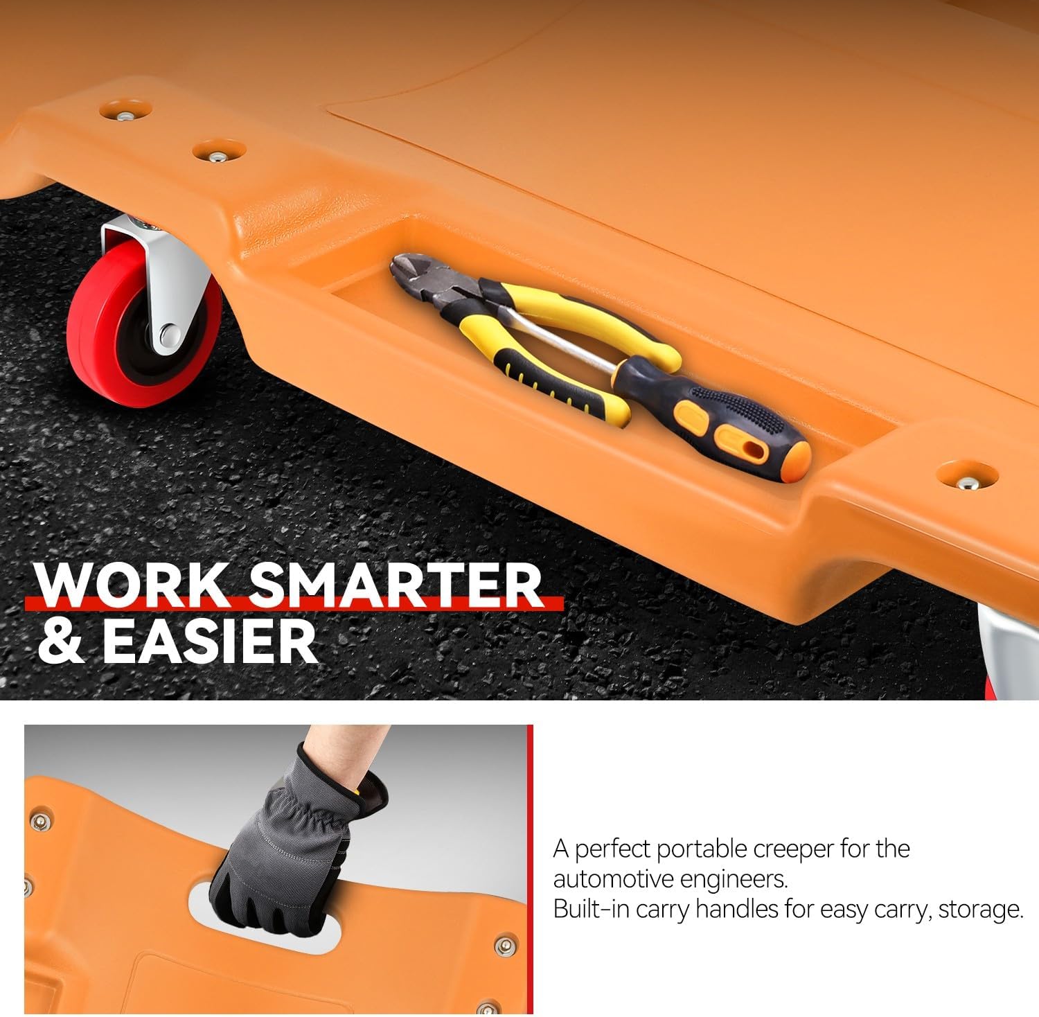 - Portable Style: This 36 inch low profile creeper can also make it easy to pick up, position, and transport with the bottom-positioned carrying handle, which ensures the work in your garage or workshop with ease.
