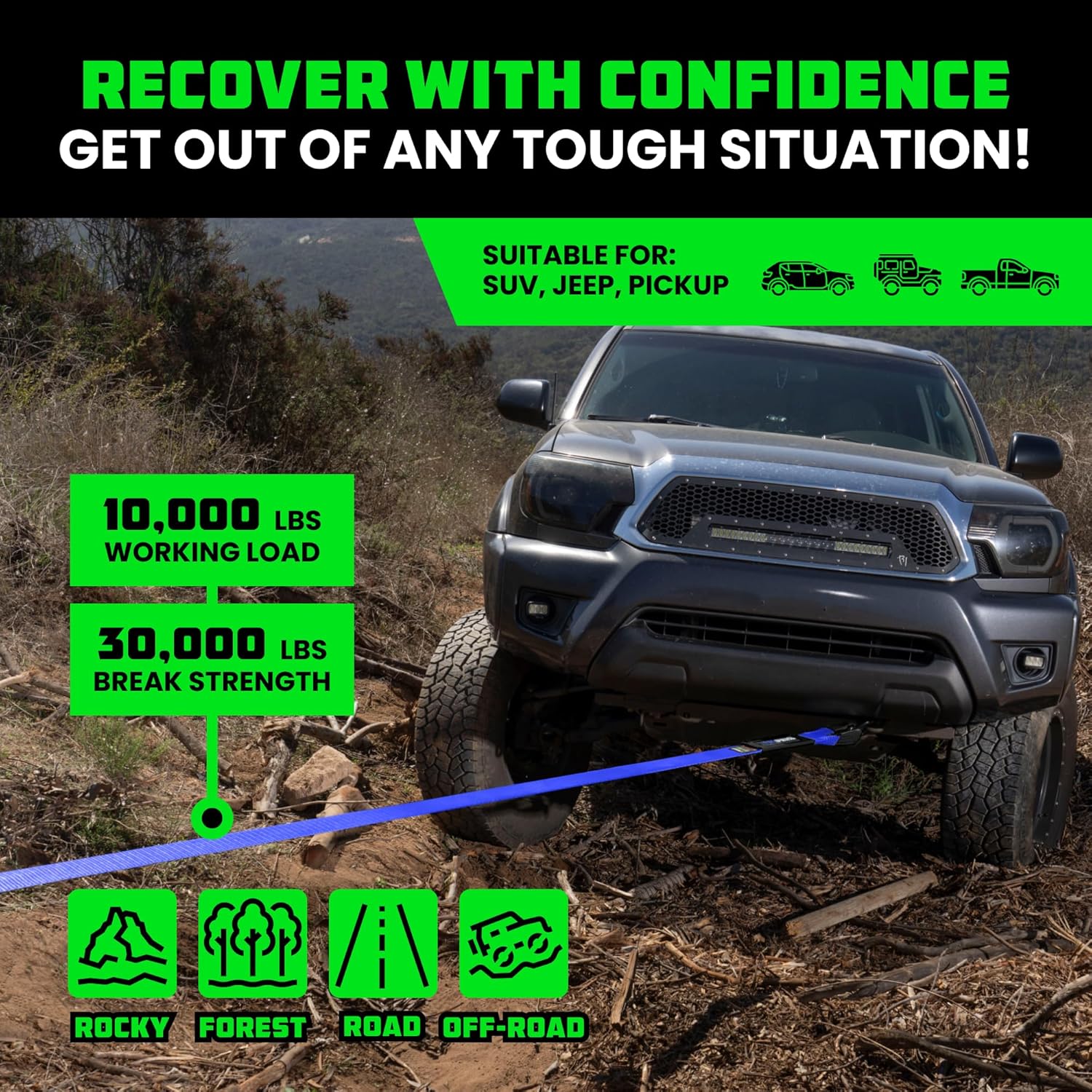 - USED FOR FLAT RECOVERY - Ideal for Towing or Pulling Vehicles that are Stuck on Flat Surfaces, Providing a Reliable Solution for Recovering Vehicles Without Damaging Them.