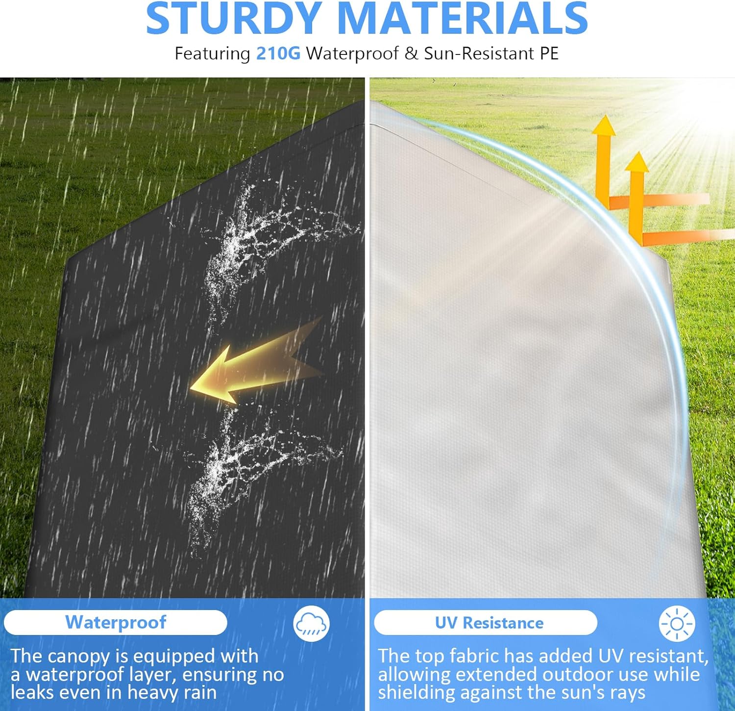 - HASSLE-FREE ASSEMBLY-Thanks to the bungee cord-ball tie assembly. Simply secure the PE tarp with elastic cords, guaranteeing a tight fit over time. This user-friendly design caters to the convenience needs of busy homeowners
