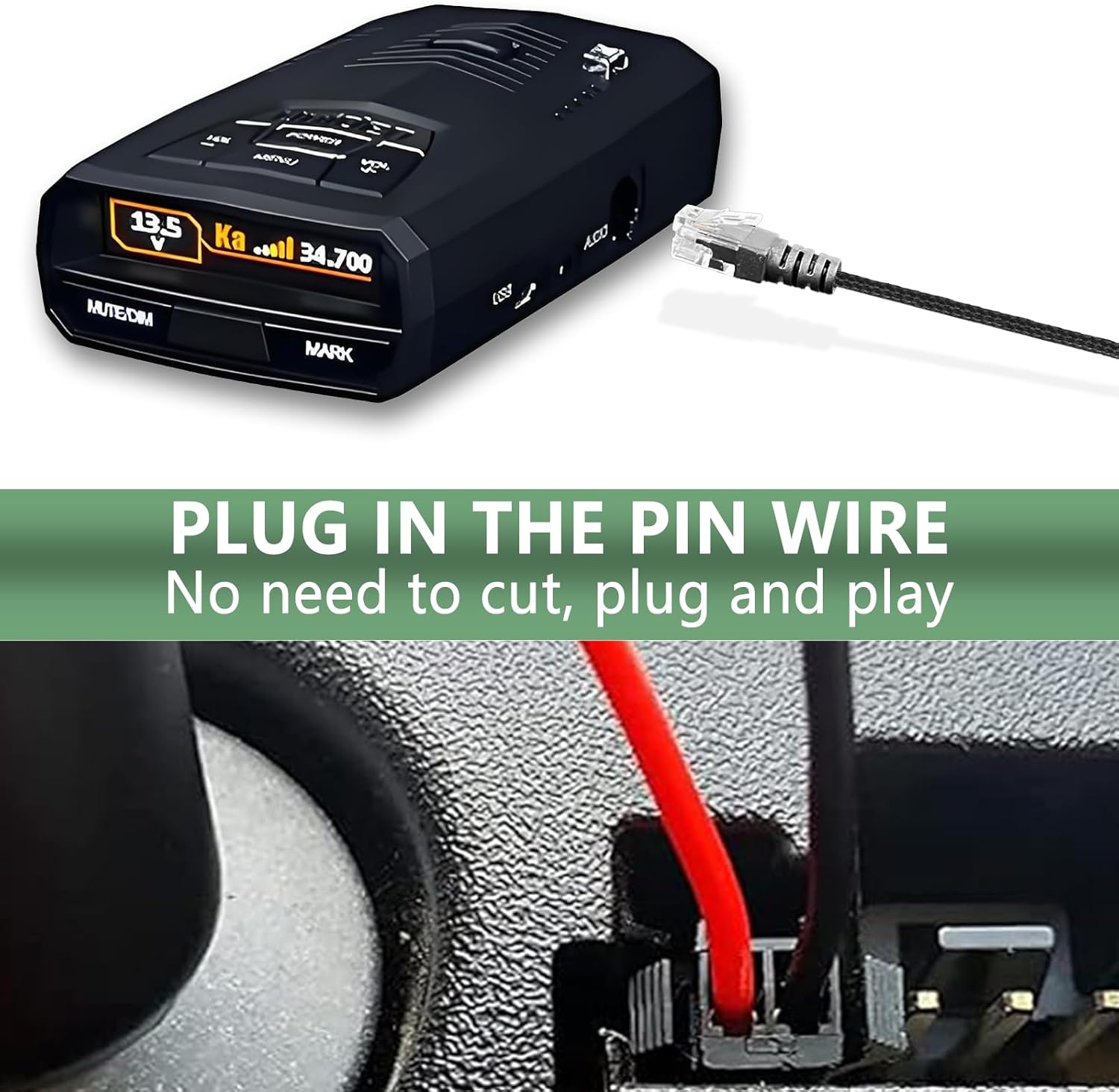 - 13.8 "radar detector hard wired power cord mirror wire plug includes 3 sizes of pins, please choose the pin you need. The built-in inline fuse holder provides a more stable connection for the radar detector. It is easy to install, does not require cutting, and is plug and play.