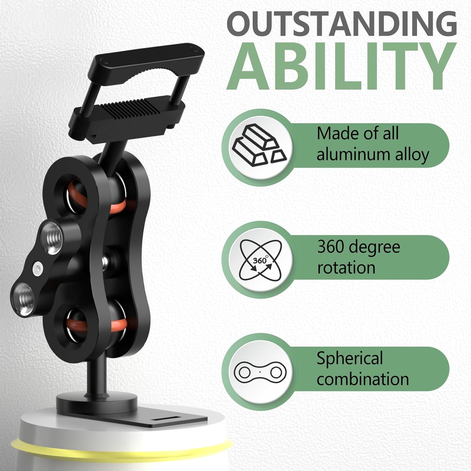 - Aluminum rearview mirror bracket has strong expandability, with two 1/4 screw holes at the handle that can be used to expand other devices.360 °rotating ball head design, flexible adjustment, ensuring the best viewing angle while driving.