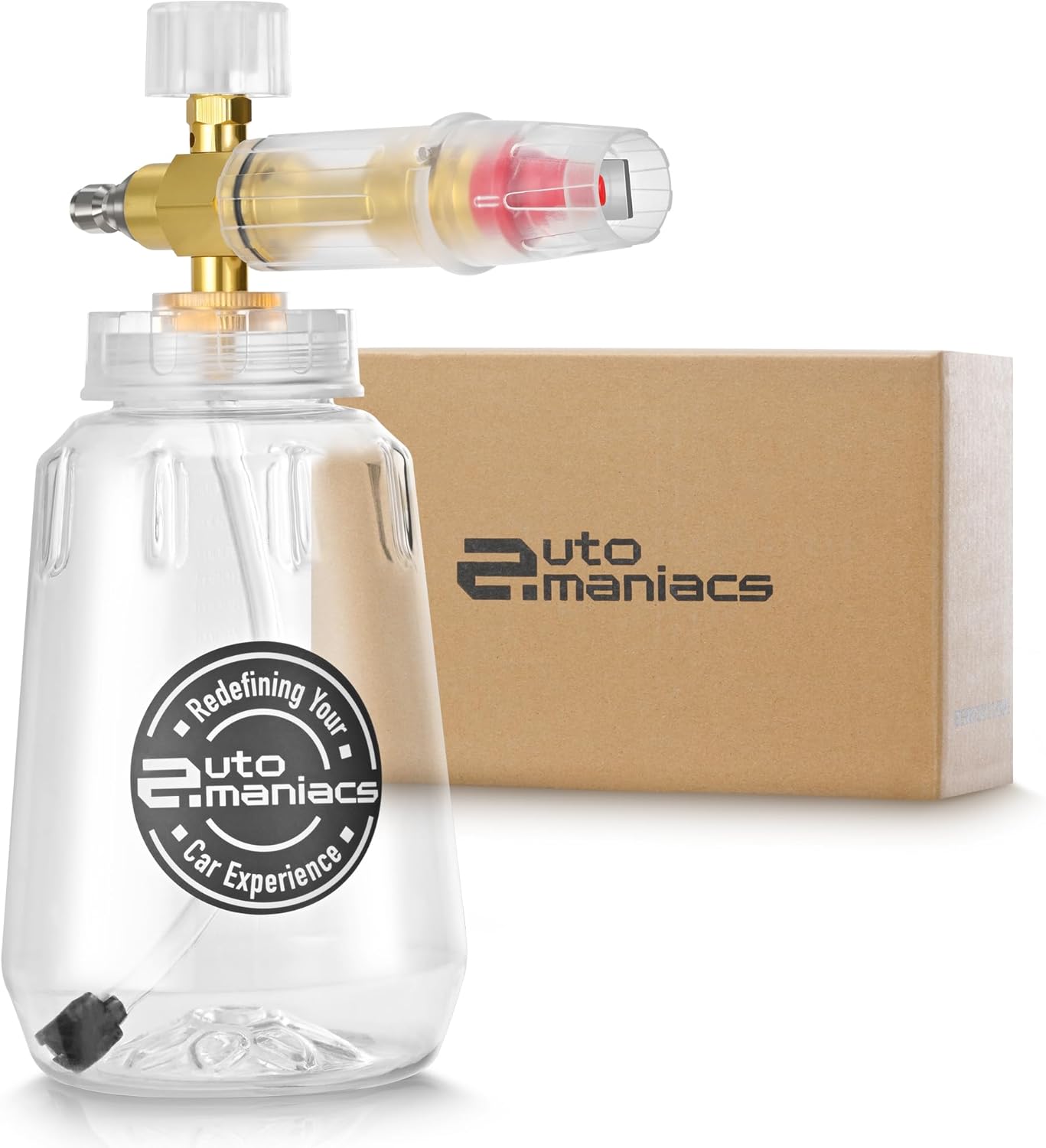 AutoManiacs Foam Cannon for Pressure Washer, Adjustable Car Wash Sprayer with 1/4 Inch Quick Connector, 1L Durable Snow Foam Blaster for Car & Truck Washing