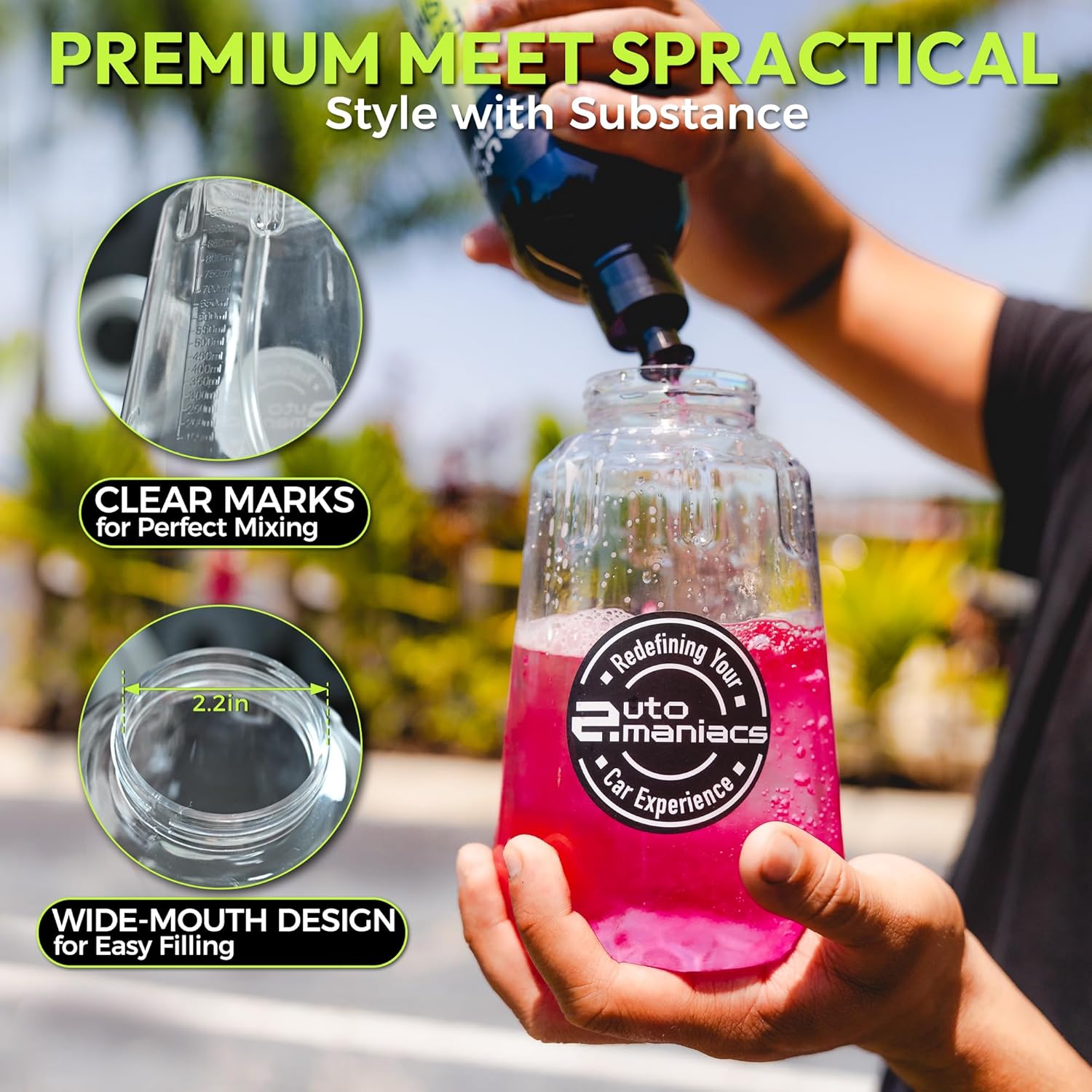 - 🚗✨ 𝗣𝗿𝗼-𝗚𝗿𝗮𝗱𝗲 𝗧𝗵𝗶𝗰𝗸 𝗙𝗼𝗮𝗺--The AutoManiacs Car Wash Foam Cannon creates shaving cream-thick foam that clings to surfaces, dissolving dirt instantly. Built for pressure washers (500-4,000 PSI) with a 33.81 oz (1L) tank, it delivers non-stop foam coverage for deep, scratch-free cleaning. Perfect for DIYers and pros craving foam cannon car wash sprayer results.