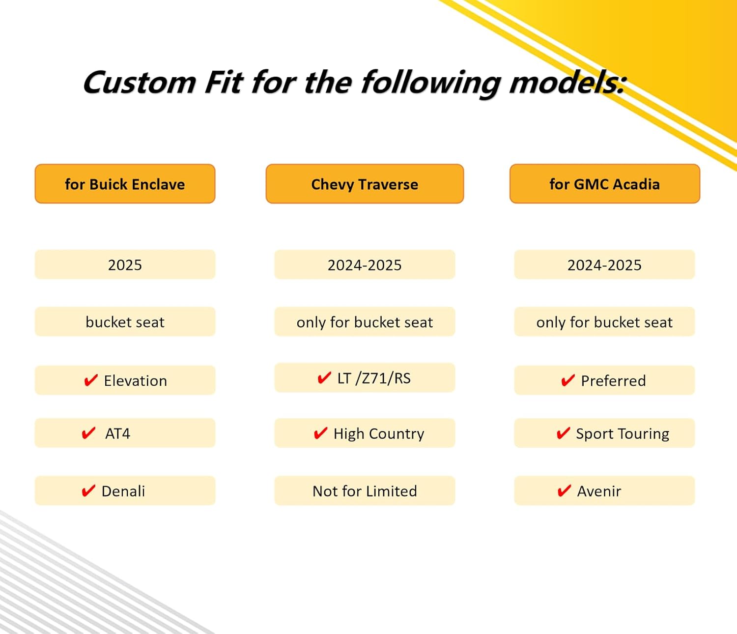 Binmotor-Floor Mats & Cargo Liner Set for Buick Enclave 2025丨for GMC Acadia & Acadia Denali 2024-2025(Only Buick Seat-7 Seats) 丨 for Chevy Traverse 2024-2025(Only Buick Seat-7 Seats)