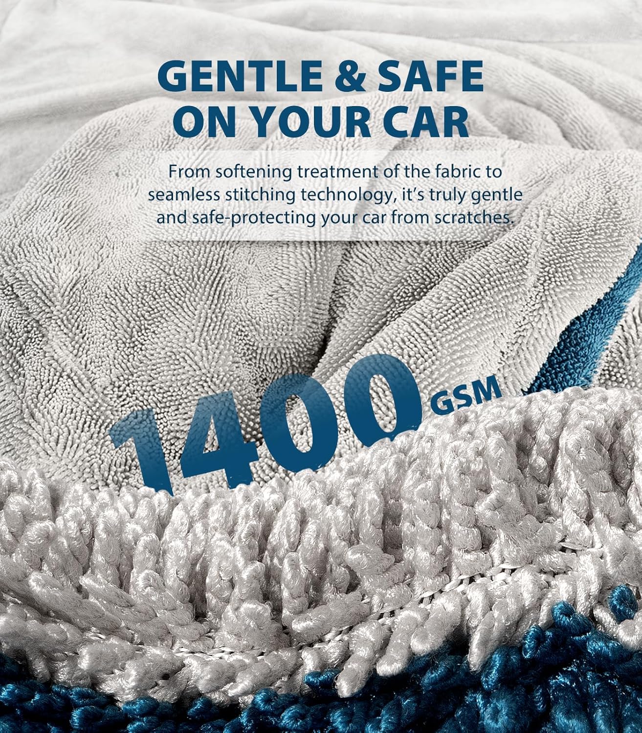 - Twisting Yarn Absorption Technology: Harness the power of 1400GSM (grams per square meter) ultra-fine microfiber with our innovative twisting yarn structure. Capable of absorbing up to 1 gallon of water, this towel guarantees a streak-free, spotless finish, leaving your car’s paint gleaming like new